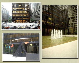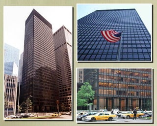 The document provides a chronological overview of significant architectural structures from the Crystal Palace in 1851 to the Seagram Building in 1958, highlighting their design, purpose, and impact on architecture. Key themes include the evolution of materials and styles, such as iron and glass in earlier buildings and the development of modernist principles in later structures. The document emphasizes the integration of architecture with environment and functionality, showcasing the works of notable architects like Joseph Paxton, Gustave Eiffel, and Frank Lloyd Wright.