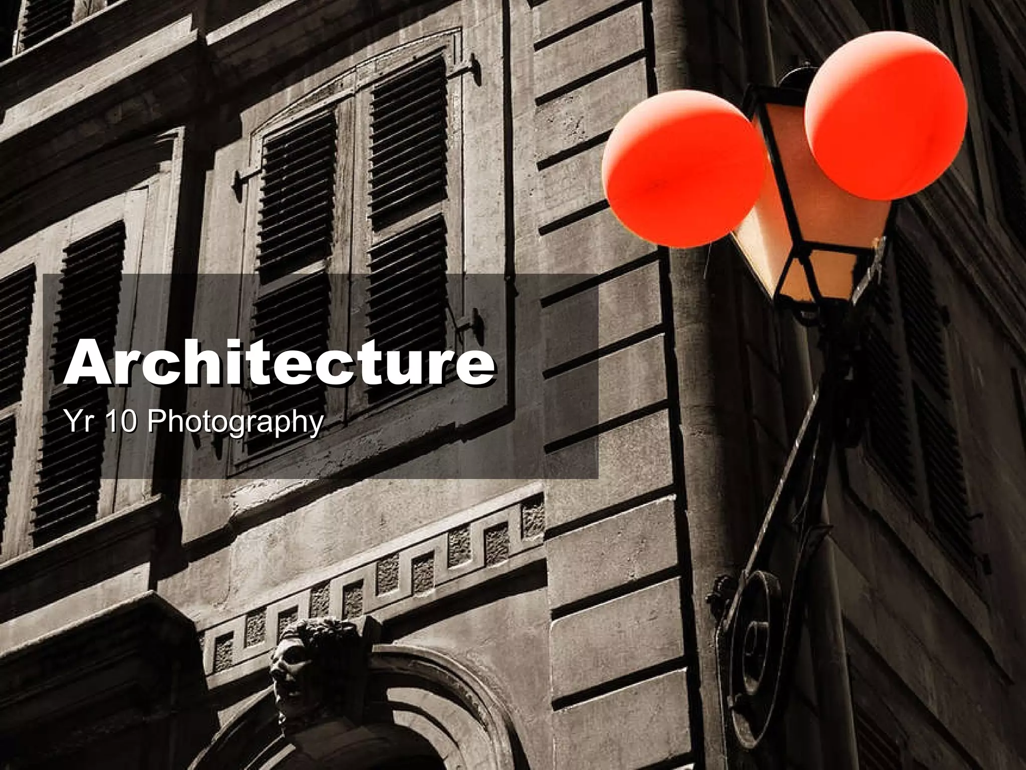 This document outlines the assessment objectives and requirements for a Year 10 photography unit focused on architecture. Students will be expected to produce a sketchbook with research on architectural photographers like Bernd & Hilla Becher and experiments with materials and techniques. They must take their own architectural photographs demonstrating composition skills. The final piece can be one photo or a collection presented to a high standard, drawing on the preparatory work. Key elements of successful architecture photography identified are geometric shapes, diagonals, reflections, framing with objects, texture, angles and repetition.