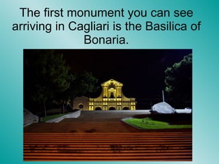 The first monument visitors see when arriving in Cagliari is the Basilica of Bonaria, which houses a statue of the Virgin Mary that mysteriously arrived from the sea. The Bastione Saint Remy offers breathtaking views of Cagliari after climbing its 170 steps. The oldest church is the Basilica of San Saturnino, built in the 5th century AD. When the Romans conquered Cagliari they built an amphitheater that could hold 10,000 spectators, and now hosts performances. During Pisan rule from 1216-1326 the city was fortified with walls and towers, some of which still stand like the Elephant and San Pancrazio towers. Renzo P