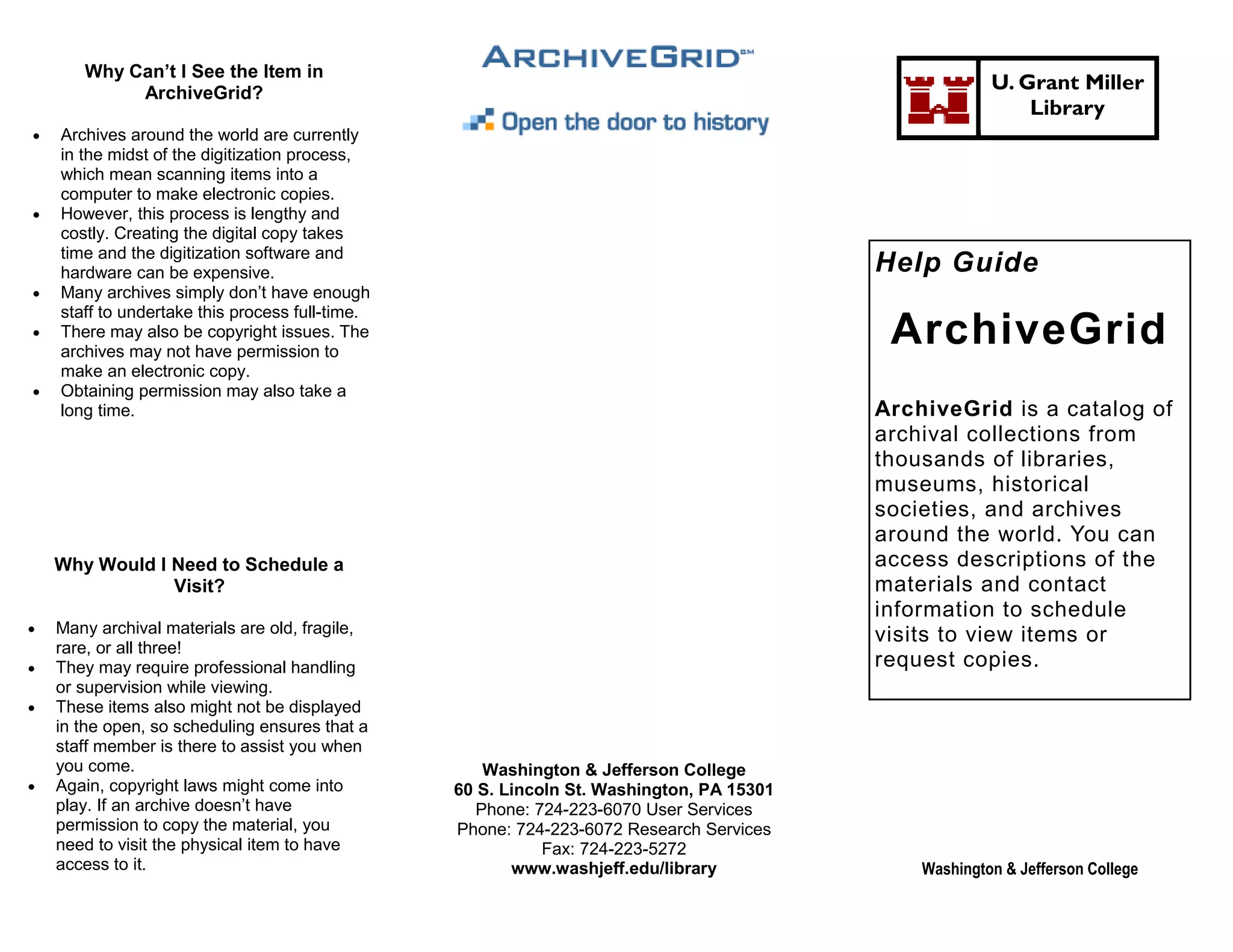 This document discusses why items may not be available to view digitally on ArchiveGrid and why scheduling a visit is sometimes necessary. It explains that the digitization process is lengthy and costly, so many archives have not digitized all their collections. Copyright issues may also prevent digital copies. The document provides an overview of what archival materials are and how to search and filter results on ArchiveGrid to find relevant information about accessing physical archival items.