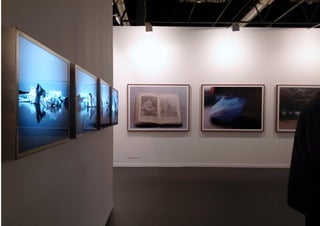 This document provides information about the Carlos Carvalho Contemporary Art gallery, including details about their booth at the ARCOMadrid art fair from February 13-17, 2013. It lists several artists being highlighted, including Daniel Blaufuks, Ricardo Angélico, and Carla Cabanas. Biographies and artwork are provided for Manuel Caeiro and Daniel Blaufuks. Information is also given about the gallery staff, schedules, and Javier Núñez Gasco.