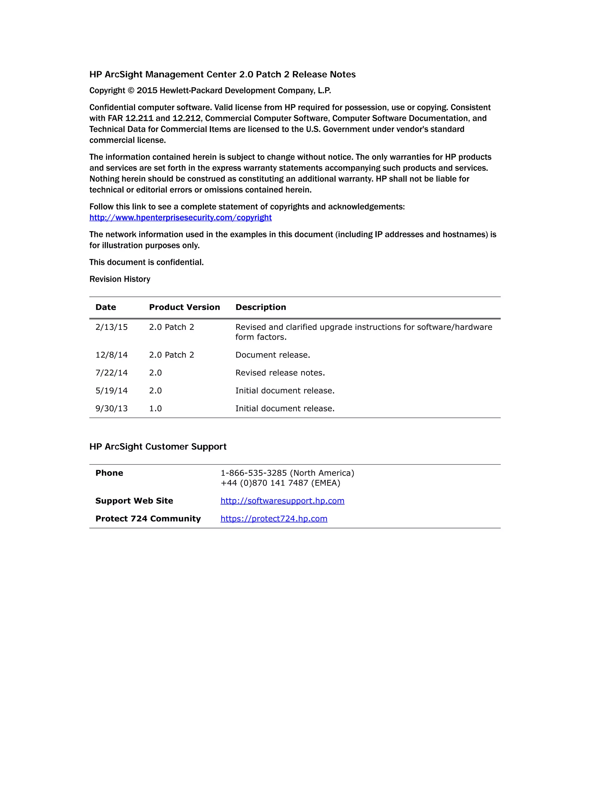 ArcSight Management Center 2.0 Patch 2 is a maintenance release that resolves issues and includes recent hotfixes. It supports upgrading ArcMC software or appliances and managing Logger 6.0. Instructions are provided for upgrading ArcMC software or appliances and the ArcMC Agent on managed devices. The release notes describe included hotfixes, technical requirements, available documentation, known limitations, and fixed issues.