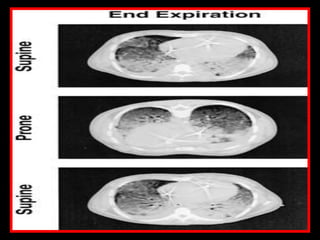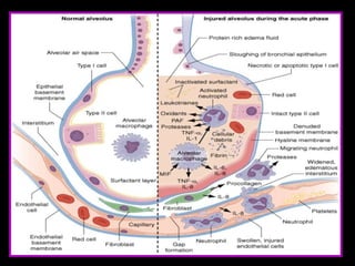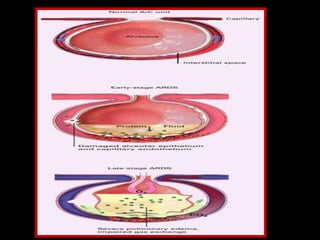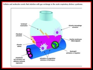 This document discusses various strategies for managing acute respiratory distress syndrome (ARDS). It begins by describing the pathophysiology of ARDS including pulmonary capillary leak, surfactant inactivation, and diffuse lung injury. It then discusses early management strategies like mechanical ventilation using low tidal volumes and recruitment maneuvers. Alternative ventilation strategies are covered such as high frequency oscillatory ventilation, liquid ventilation using perfluorocarbons, and nitric oxide administration. Adjuvant therapies like secretion clearance techniques, incentive spirometry, and surfactant administration are also summarized. The document aims to provide an overview of ARDS management approaches.