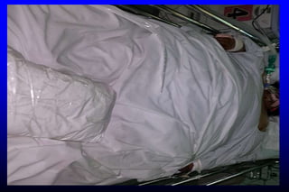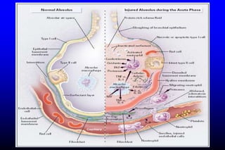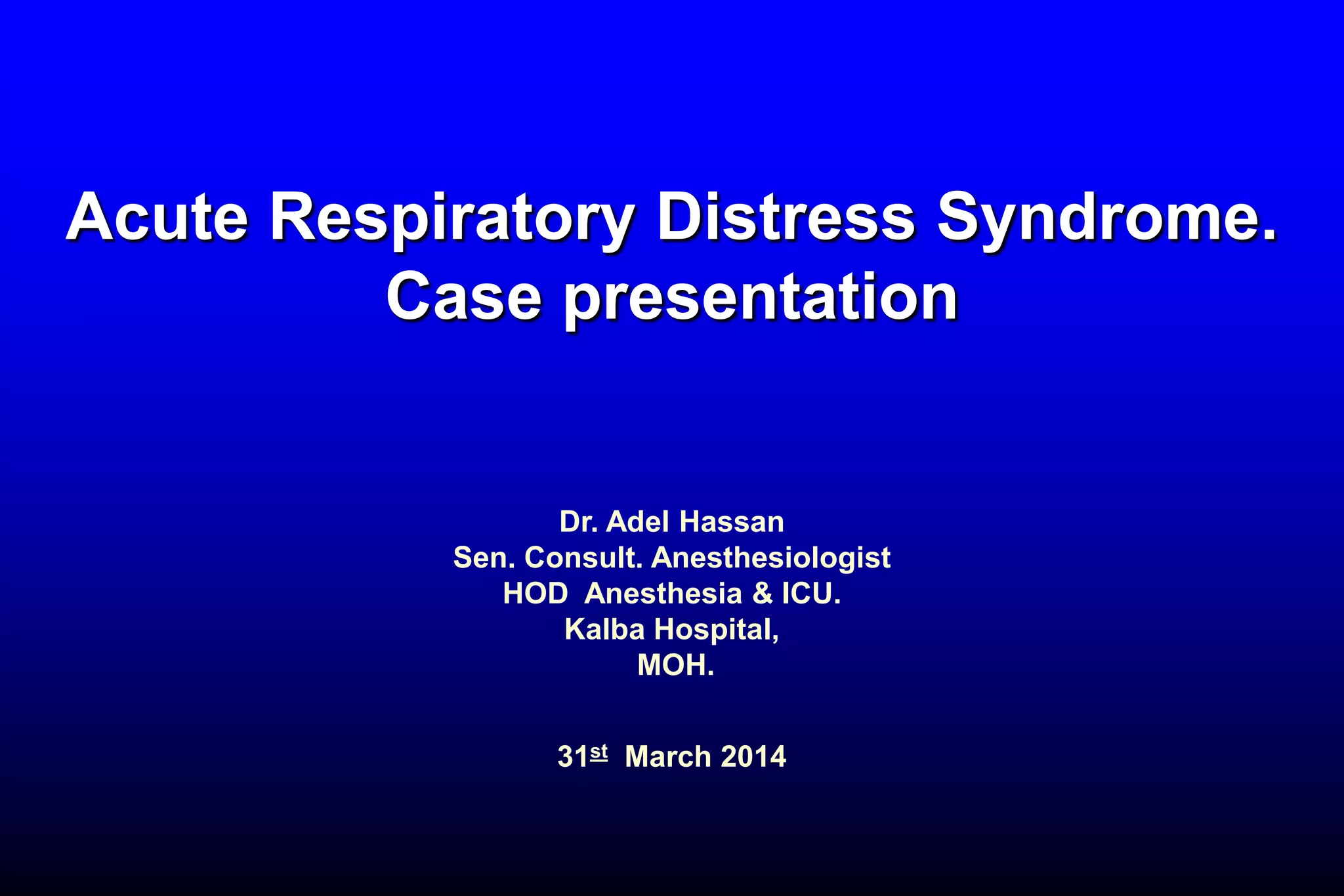 This document discusses a case of acute respiratory failure in a 300 kg patient who presented with sudden severe hypoxia and unconsciousness. It then provides an overview of acute respiratory failure, distinguishing between hypercapnic and hypoxemic respiratory failure. Various causes of each type are described in detail. The case is specifically focused on acute respiratory distress syndrome (ARDS), explaining its pathogenesis, risk factors, complications, and management including a landmark ARMA clinical trial showing benefit of lower tidal volumes.