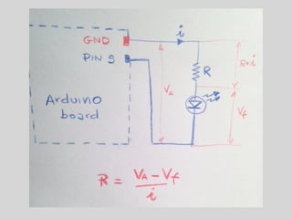 Il documento descrive un workshop di base su Arduino, evidenziando il concetto di 'physical computing' e l'importanza della prototipazione nella creazione di progetti interattivi. Vengono introdotte le funzionalità di Arduino e le sue applicazioni pratiche attraverso esercizi pratici che coinvolgono sensori, attuatori e programmazione. Inoltre, viene spiegato il linguaggio di programmazione Arduino e i principi fondamentali dei circuiti elettrici, inclusi i componenti come resistenze e LED.