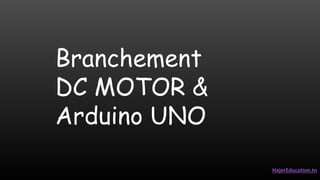 This document discusses how to connect and control a DC motor using an Arduino Uno board. It explains the components needed like the motor, MOSFET transistor, diode rectifier and resistor. It describes how the motor works using electromagnetic principles and how the diode rectifier converts AC to DC power. It shows the pin connections and provides an example Arduino code using PWM to control the motor's speed by writing analog values to the motor control pin.