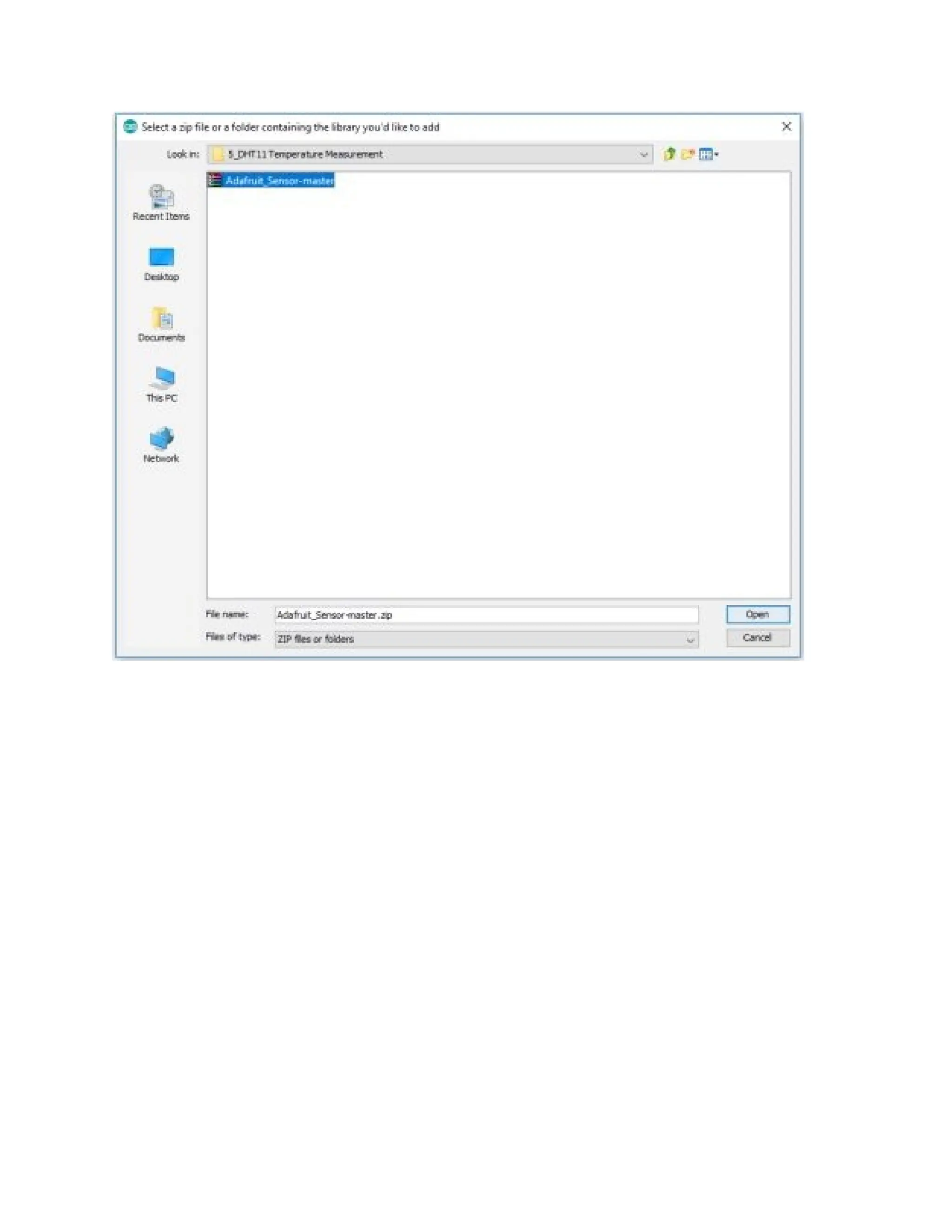 navigate to MQ-2 sensor library and click open add it the Arduino library