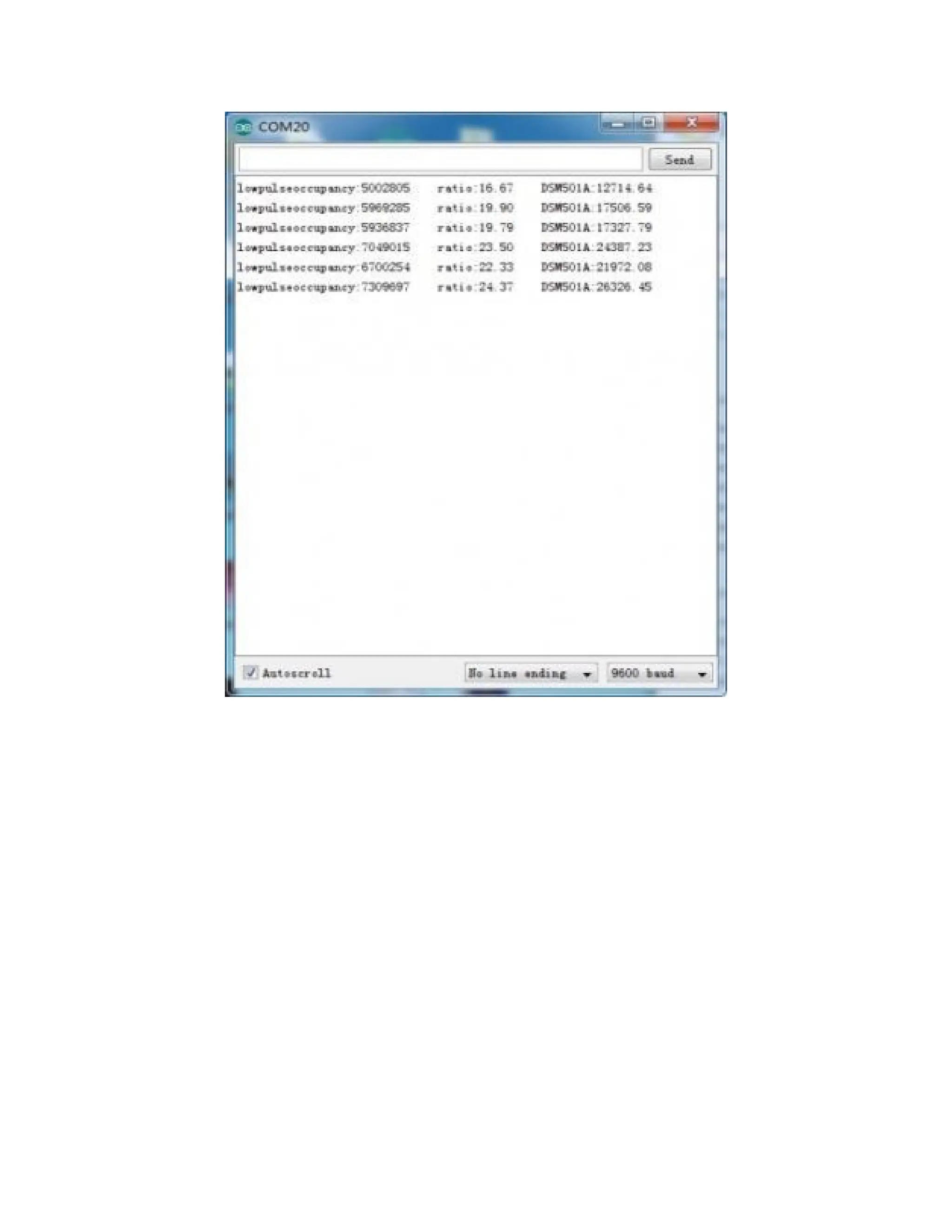 Serial.print(ratio); Serial.print(" DSM501A:");