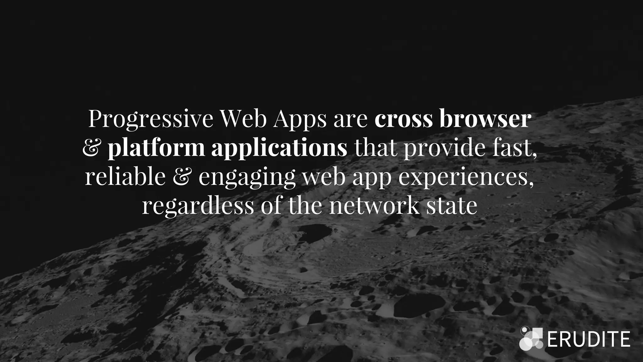 Progressive web apps (PWAs) provide app-like experiences through the browser while taking advantage of the web's capabilities. PWAs load quickly, work offline, and can be installed on the home screen. Studies show PWAs significantly outperform mobile apps in speed and user experience. As mobile usage grows, PWAs allow developers to build once and deploy everywhere without app stores.