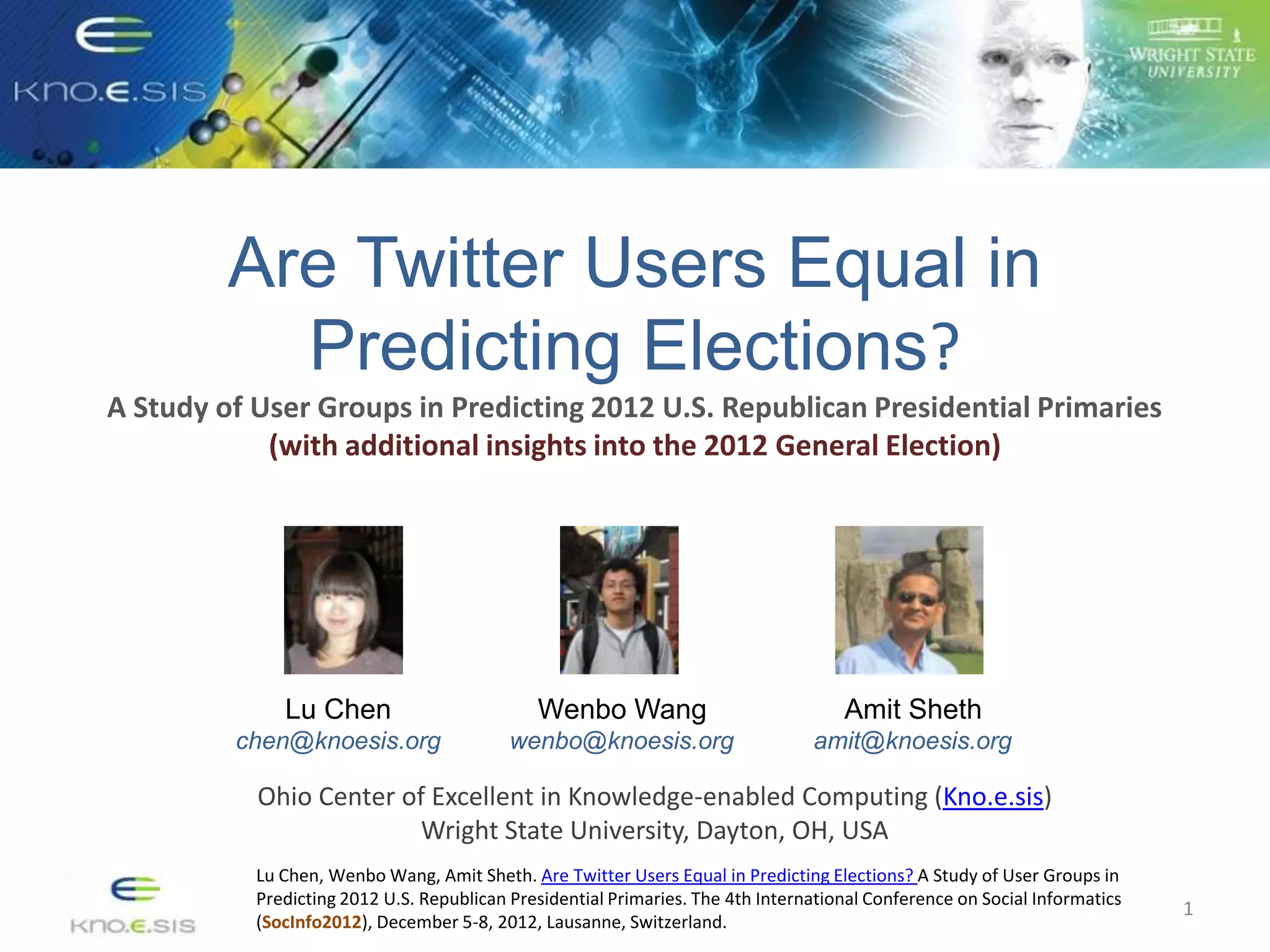 The study investigates whether different groups of Twitter users are equally effective in predicting election outcomes during the 2012 U.S. Republican presidential primaries. By analyzing over 6 million tweets, the research categorizes users based on engagement levels and political preferences, revealing that right-leaning users show greater involvement and predictive accuracy than left-leaning users. The findings emphasize that user engagement and sentiment significantly influence the ability to accurately forecast election results, suggesting that not all Twitter users hold equal predictive power.