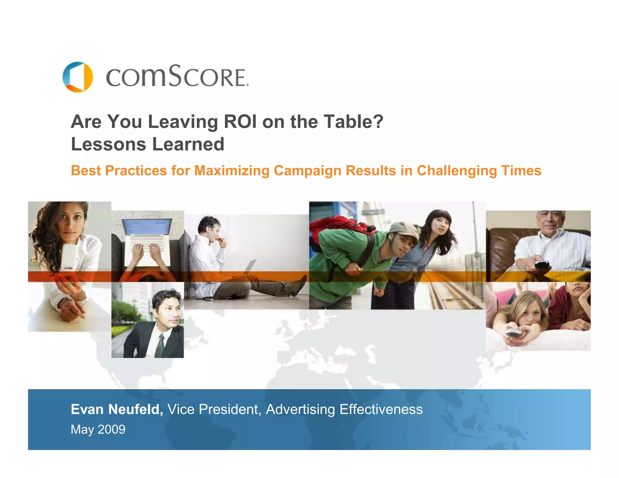 This document discusses measuring the effectiveness of digital advertising campaigns. It provides an overview of comScore's capabilities for holistic measurement of online and offline effects. ComScore uses a test-control methodology with its large online panel to measure lift in key metrics like awareness, attitudes, behaviors and purchases. The document outlines challenges like cookie deletion that can understate effectiveness and how comScore addresses this. It also shares benchmark norms from many studies to help clients understand campaign performance.