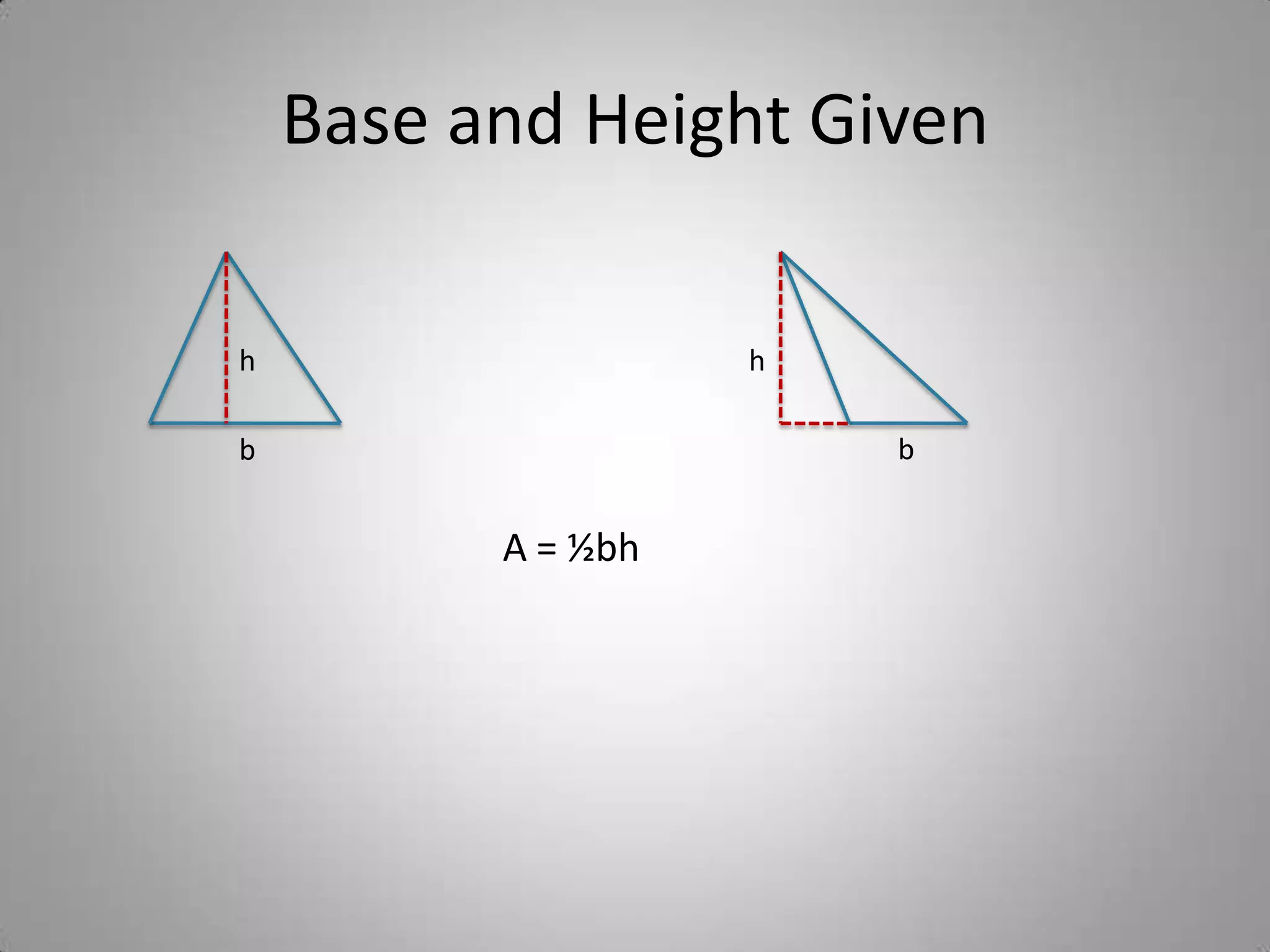 This document discusses three methods for calculating the area of triangles: using the base and height, using two sides and the included angle, and using all three sides. It provides the formulas for each method and works through examples of calculating the area. Practice problems are included at the end to allow additional practice applying the different area calculation methods.