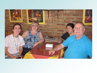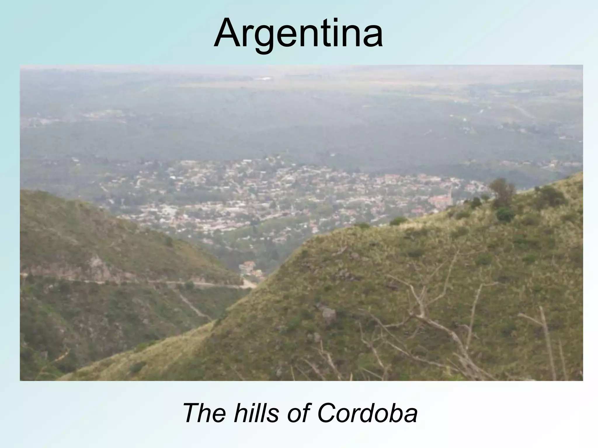 This document provides an overview of the author's visits to two towns in Argentina - Villa Maria and Villa Allende in Cordoba Province. It summarizes the author's experiences meeting with two teachers, Erica and Anahi, visiting their schools, interacting with their students and families, seeing historical sites, and learning about Argentine culture through food and dance. The author shares photos from their trip documenting these experiences.