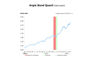 The document provides performance statistics for an investment portfolio since its inception on December 7, 2011, detailing annualized returns, maximum drawdown, and risk metrics such as volatility and Sharpe ratio. It compares the portfolio's performance against an index, highlighting a maximum drawdown of 27 trading days and recent returns through March 2014. Additionally, individual monthly performances are outlined for each year from 2011 to 2014.