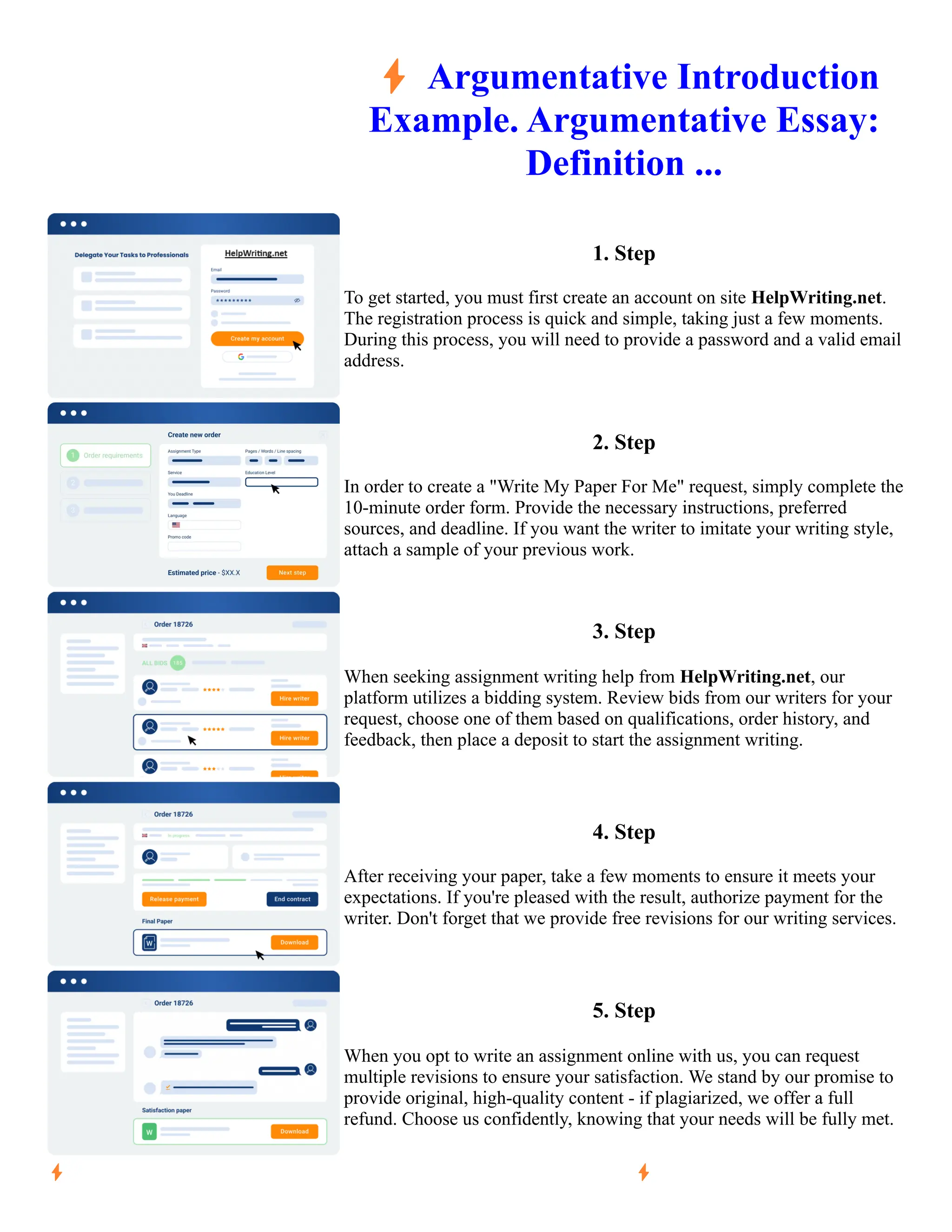 The document provides instructions for creating an account and submitting a paper writing request on the HelpWriting.net site. It outlines a 5-step process: 1) Create an account with an email and password. 2) Complete a form with paper details, sources, and deadline. 3) Review writer bids and choose one based on qualifications. 4) Receive the paper and authorize payment if satisfied. 5) Request revisions until fully satisfied, with a refund option for plagiarism.