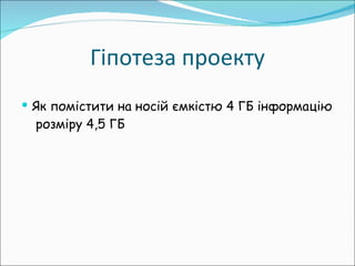 Гіпотеза проекту Якпомістити на носій ємкістю 4 ГБ інформацію розміру 4,5 ГБ