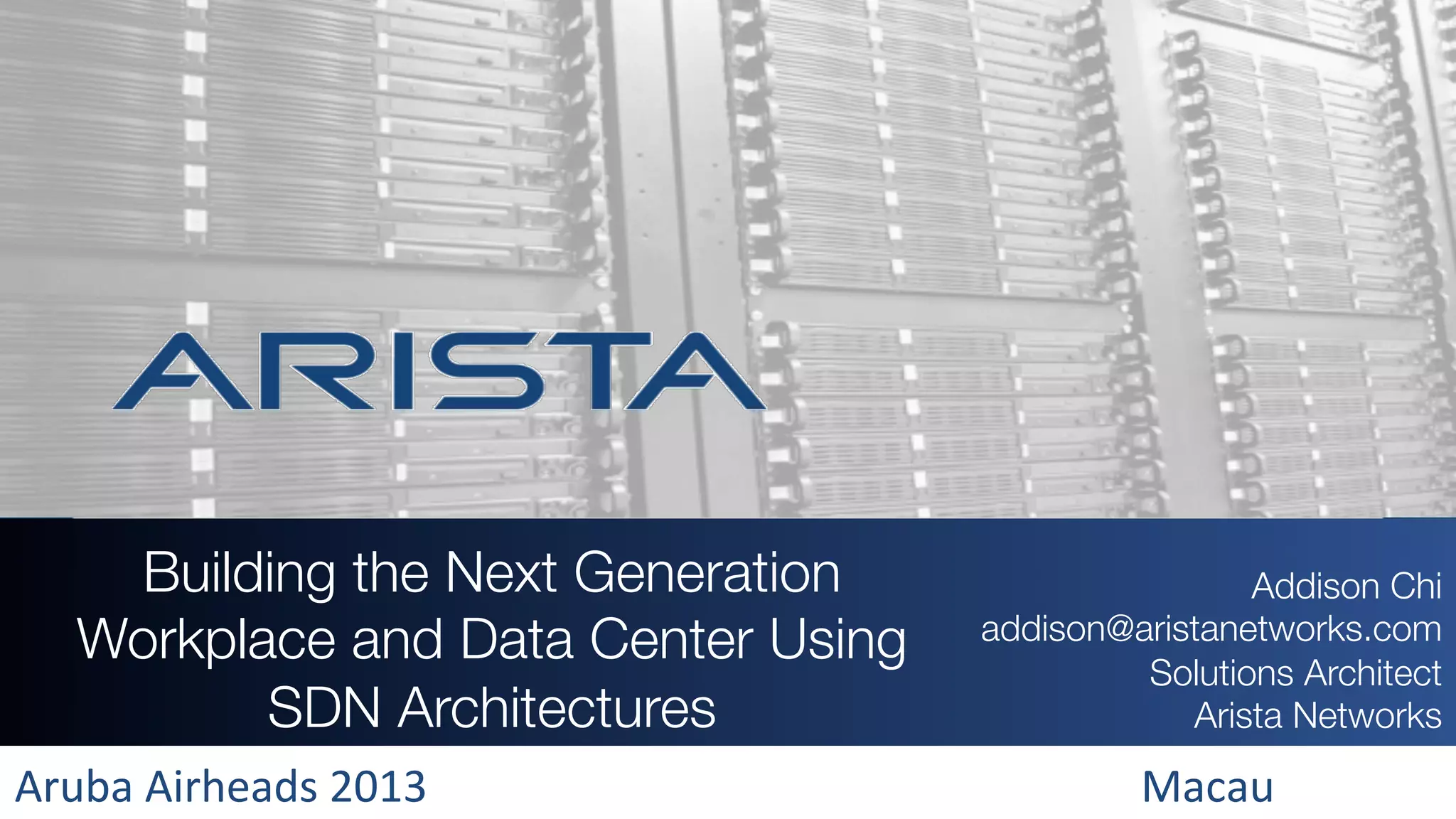 The document discusses the evolution of workplace and data center networking, focusing on software-defined networking (SDN) architectures from Arista Networks and Aruba. It highlights trends such as the increased prevalence of BYOD, the demand for low-latency communication, and the integration of technical solutions aimed at optimizing network performance. Arista's portfolio features advanced switching technologies and software solutions designed to address the challenges posed by modern data workloads and network visibility needs.