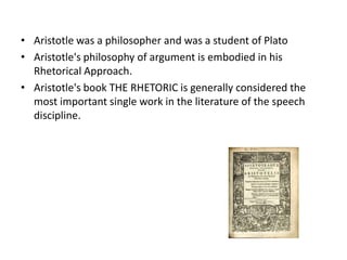 - Aristotle was a student of Plato and his book The Rhetoric is considered important for the study of rhetoric and persuasive speech.