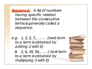The document defines and provides examples of arithmetic progressions (AP). It states that an AP is a sequence where the difference between consecutive terms is constant. The key characteristics of an AP include: