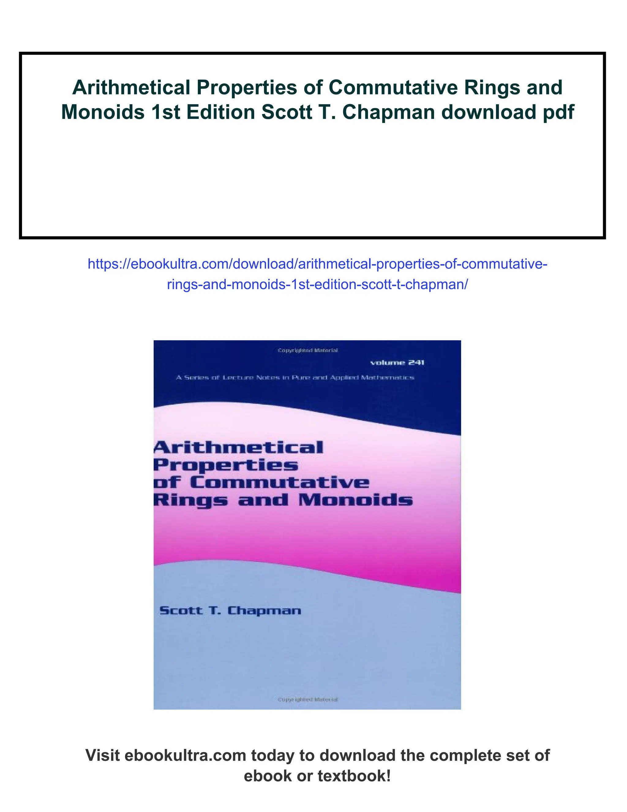 Arithmetical Properties ofCommutative Rings and Monoids 1st Edition Scott T. Chapman download pdf https://ebookultra.com/download/arithmetical-properties-of-commutative- rings-and-monoids-1st-edition-scott-t-chapman/ Visit ebookultra.com today to download the complete set of ebook or textbook!