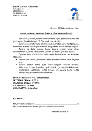 Matizaren 4an Areitz Sorora joateko baimena ematen diot.