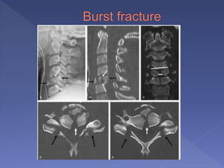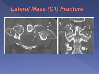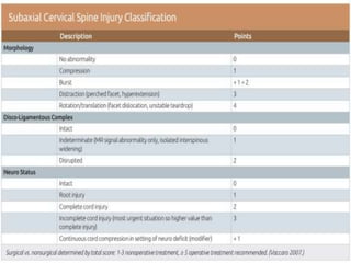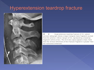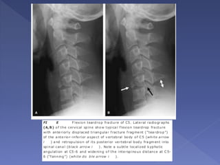 This document discusses spinal trauma, with a focus on cervical spine injuries. It provides details on: