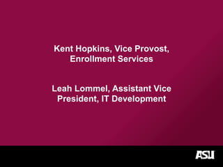 Arizona State University (ASU) has developed a new university model focused on excellence, access, and research for public good, which is illustrated by growing enrollment metrics from 2002 to 2013. The implementation of Salesforce CRM has helped ASU in managing relationships and case management for students and alumni, leading to improved communication and service delivery. Key lessons learned during this transition include the importance of user understanding, simplicity in systems, and investing in staff training.