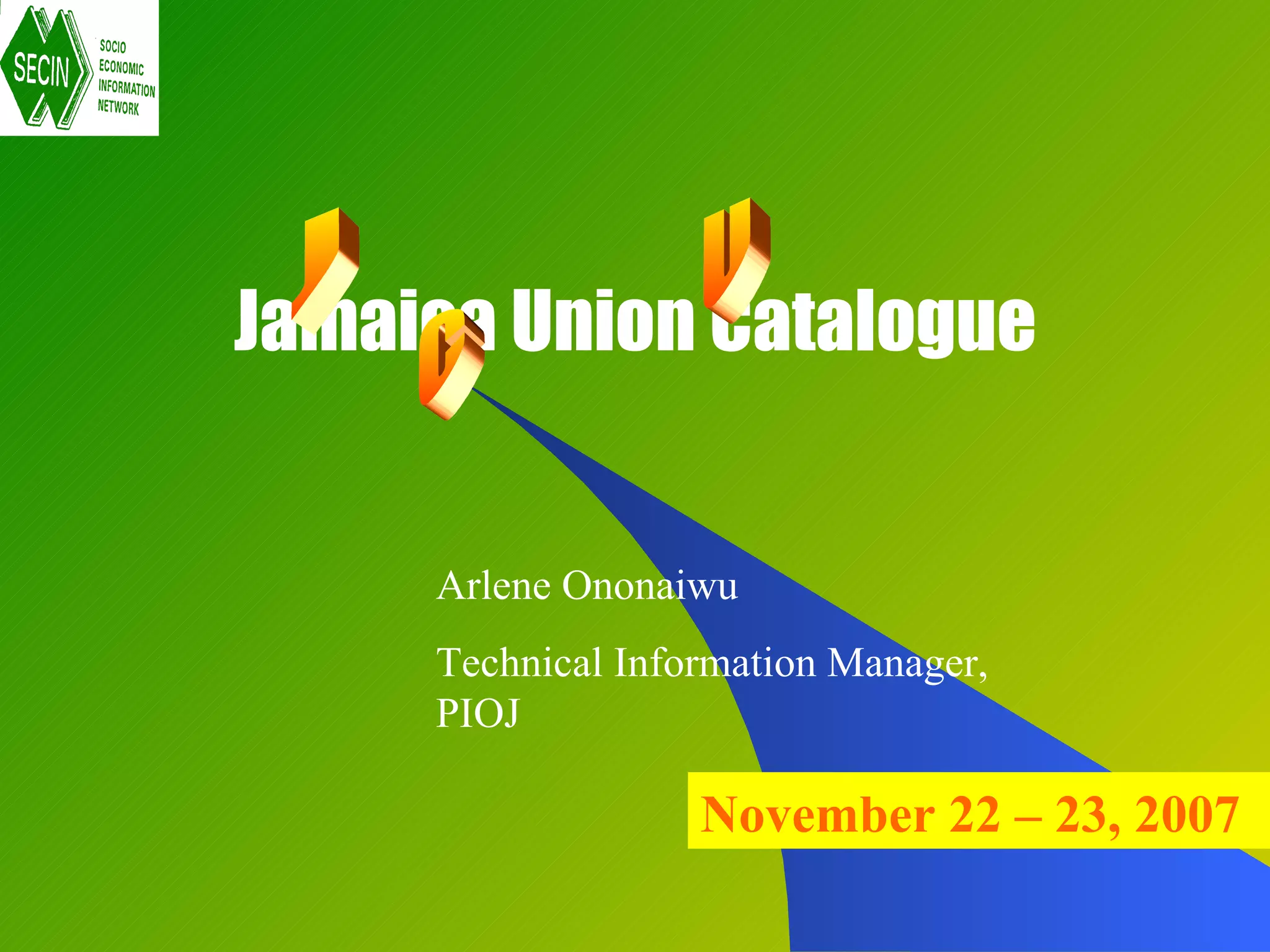 The document discusses the objectives and background of the Jamaica Union Catalogue project. It outlines the benefits of a union catalogue for both users and libraries, including the ability to search across multiple collections and enhanced negotiating power with suppliers. It then describes Jamaica's national library system and some of the sectoral sub-networks, challenges in establishing a national bibliographic database, and security concerns expressed by some libraries in participating.