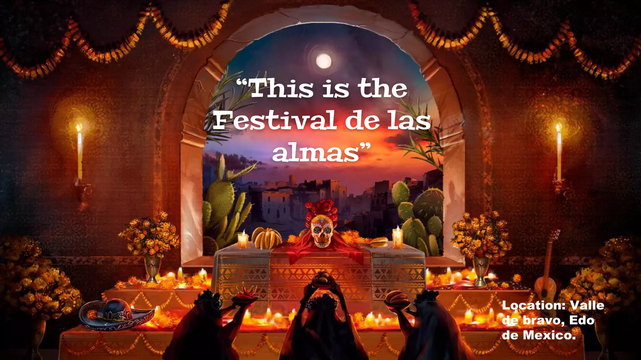 The Festival de las Almas is a celebration held in Valle de Bravo, Mexico from October 24th to November 2nd each year. The festival honors the memory of the dead and the tradition that their souls return annually to visit loved ones. Various indigenous communities gather for activities like music, food, and a costume race called the Paseo de las Almas. The name of the festival comes from the belief that it marks the beginning of when lost souls can enjoy worldly activities with relatives.