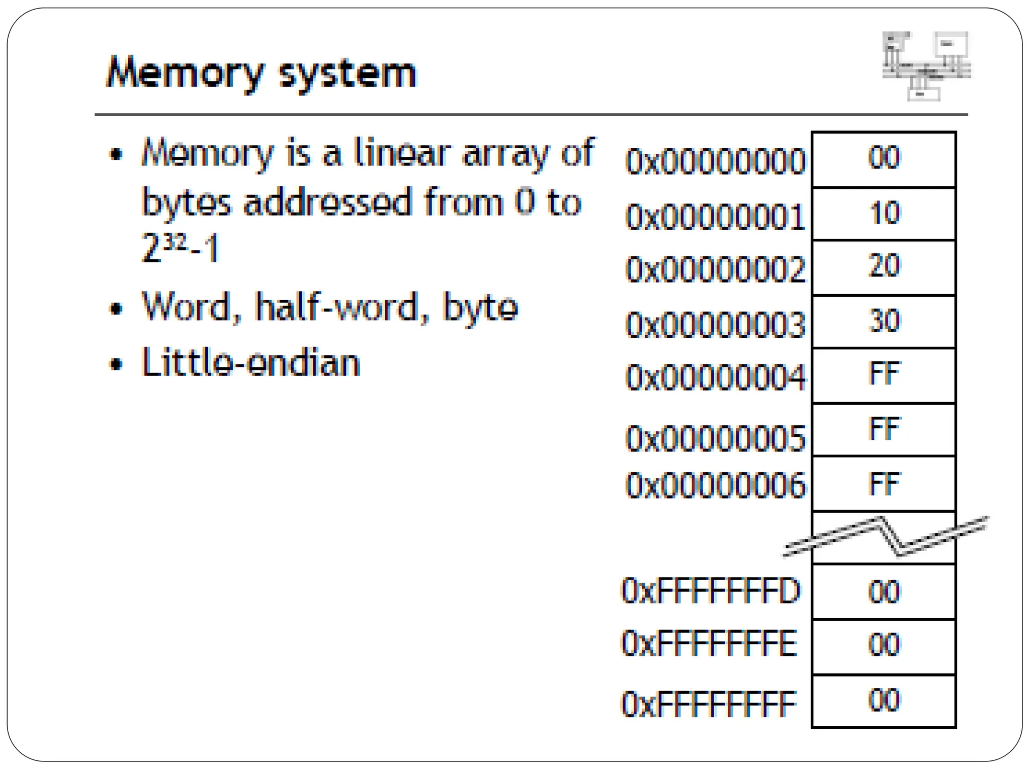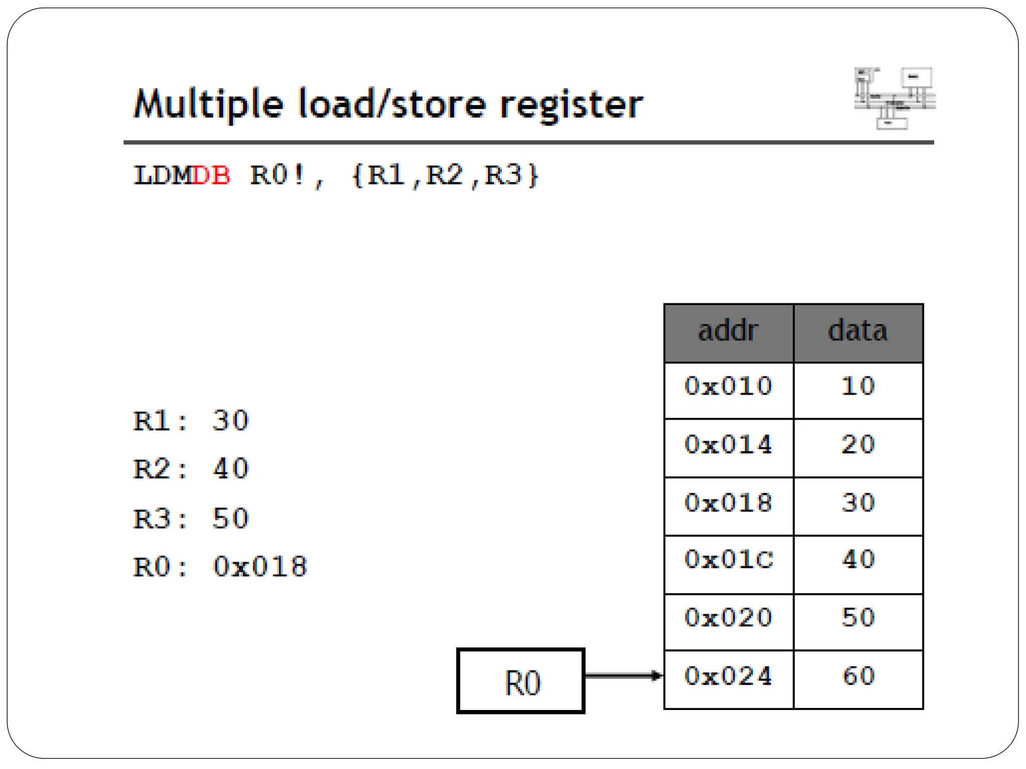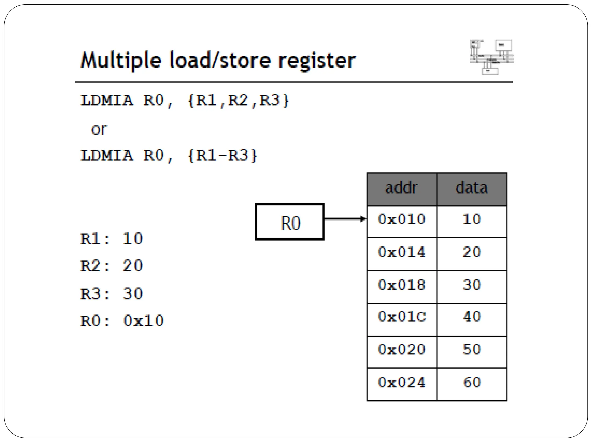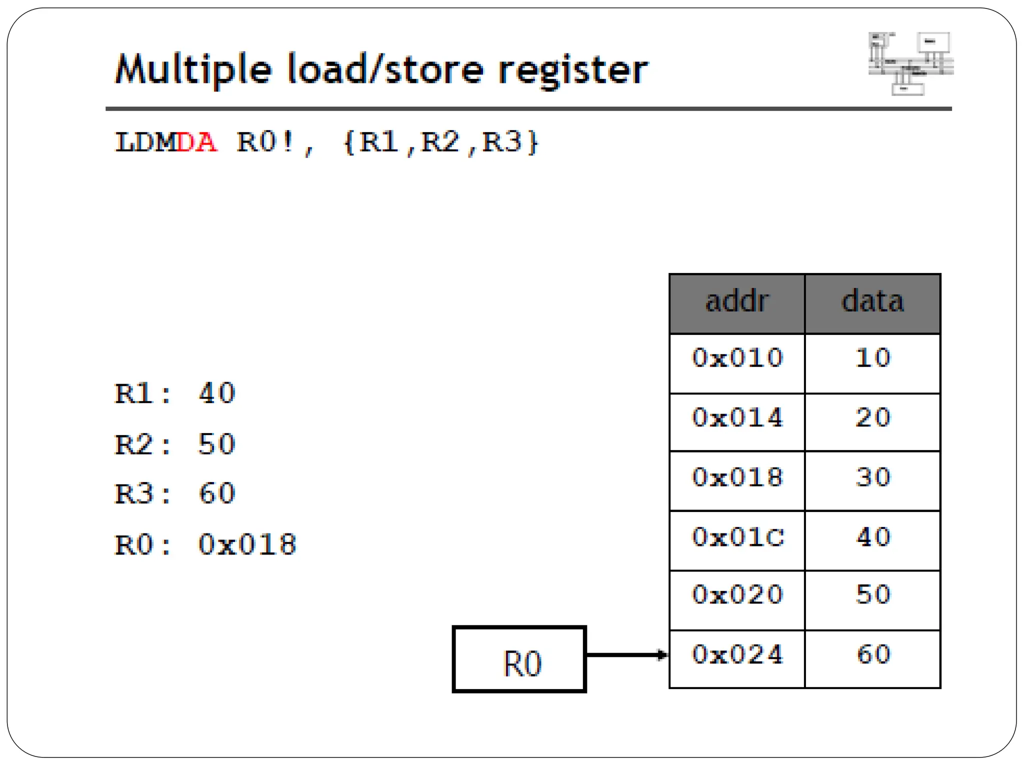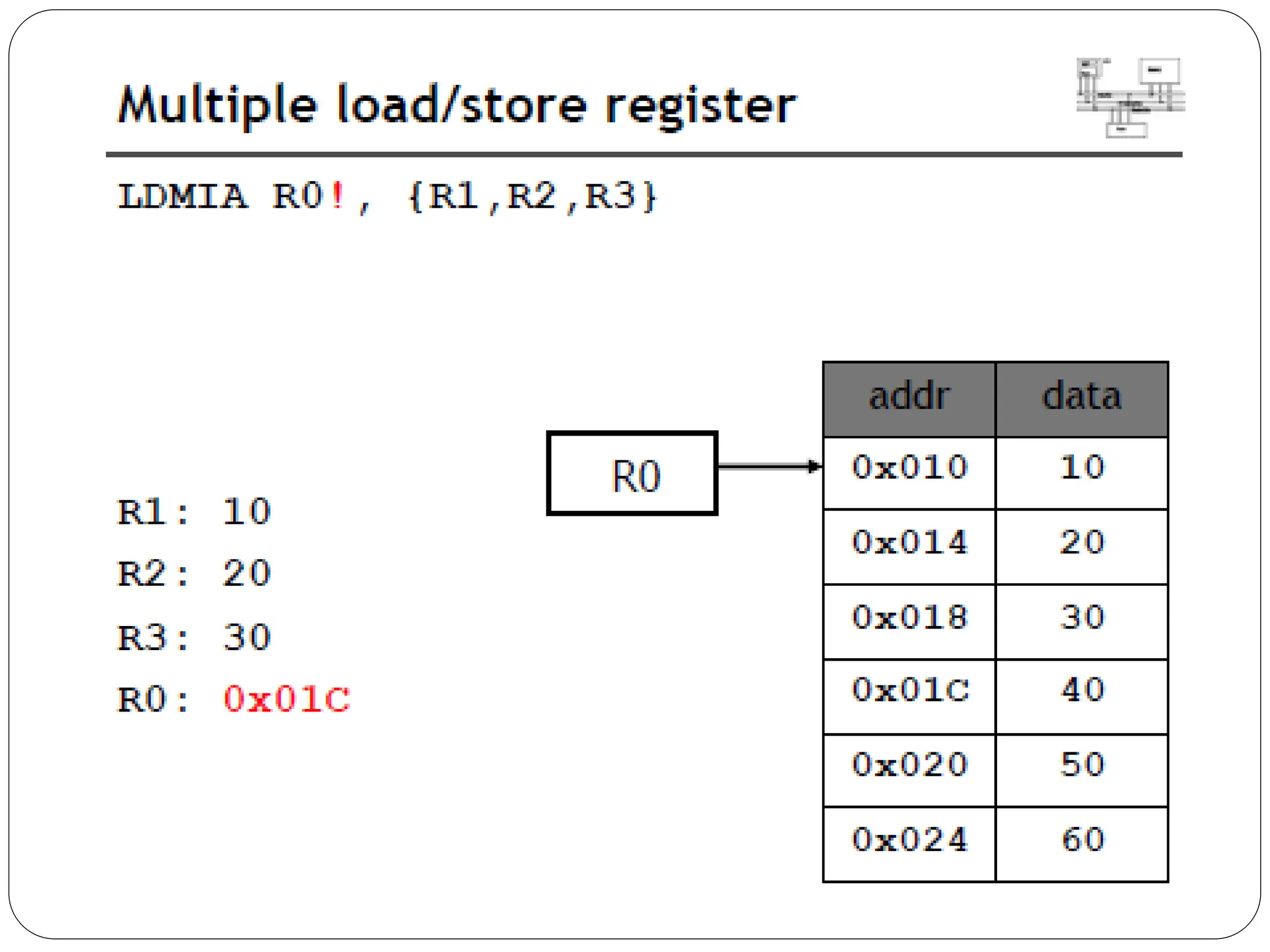 The document details the ARM architecture, describing its reduced instruction set computer (RISC) design, including a load/store data-processing model and various processor modes such as user, supervisor, and interrupt modes. It outlines the structure of ARM's registers, including general-purpose, status, stack pointer, link register, and program counter, and explains the role of condition code flags in managing execution flow. Additionally, the document covers ARM's instruction set categories, specific instructions (like arithmetic and data movement), and the handling of exceptions during operation.