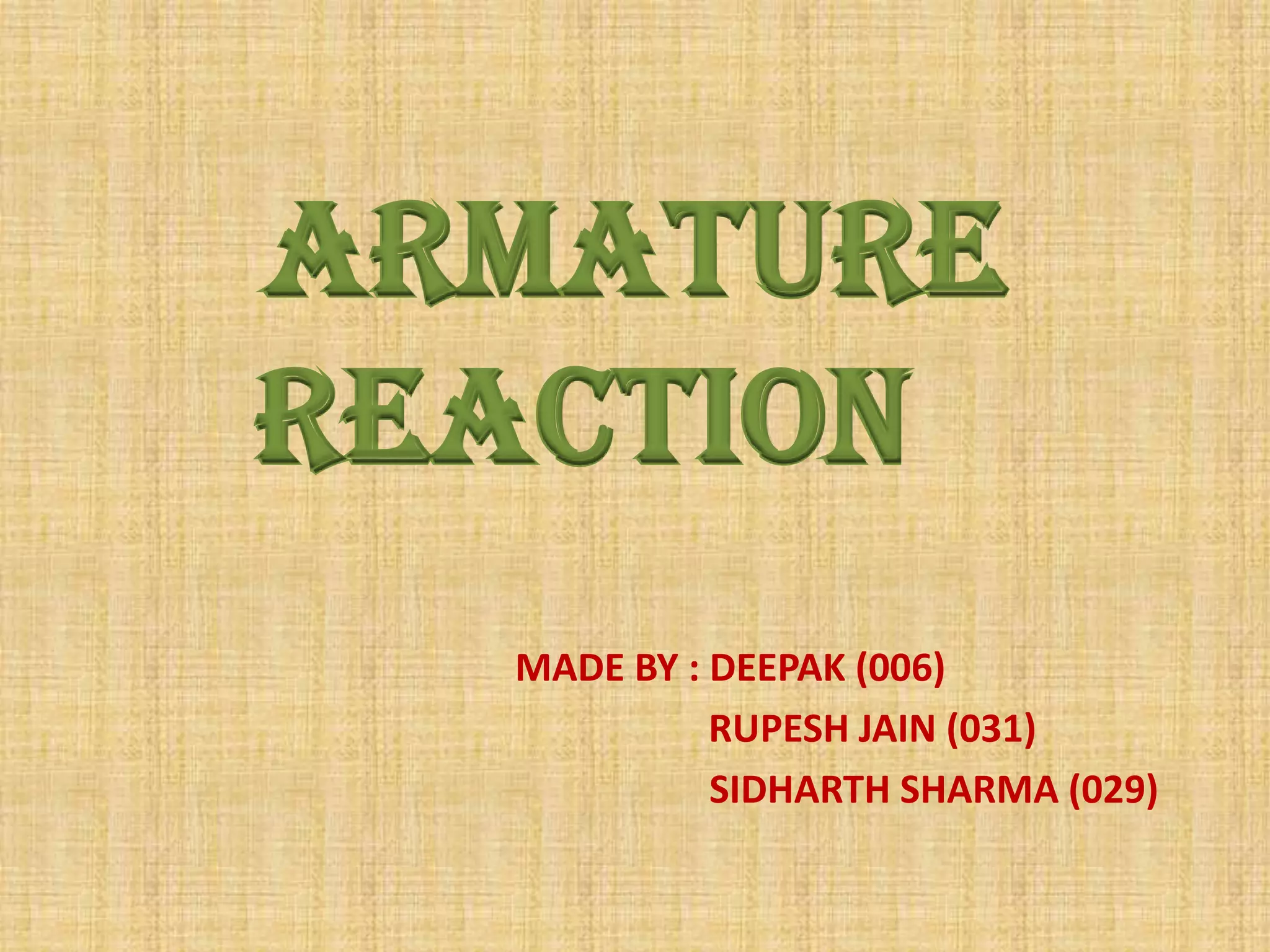 Armature reaction is the distortion of the magnetic field in a DC generator caused by the magnetic field produced by current in the armature. This reaction shifts the neutral plane and affects commutation. It can reduce the induced EMF and torque. Methods to reduce armature reaction include using poles with high reluctance at the tips, laminated pole shoes, reducing armature flux through field pole laminations, having a strong main magnetic field, using interpoles, and adding compensating windings.