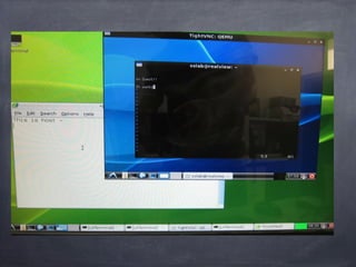 ARMvisor is a KVM implementation for the ARM architecture that allows running virtual machines on ARM-based systems. It uses para-virtualization, trapping sensitive instructions and emulating them to virtualize ARM processors, which are not fully virtualizable. ARMvisor supports ARM Cortex-A8 and ARMv7 ISA via QEMU emulation and uses virtio for I/O and an in-kernel interrupt controller to virtualize devices and interrupts. The developers plan to open source ARMvisor in August 2012 under the GPLv2 license along with documentation to encourage others to try it and provide feedback.