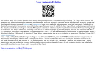 The document discusses the importance of leadership development in the military to accomplish its mission and strategic goals. It states that people desire quality leadership to help achieve both personal and professional development, and that having a clear vision and motivation influences others to work together towards organizational goals. Additionally, the document notes that employees value being treated respectfully, fairly and ethically.