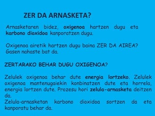 Arnasketarenbidez, oxigenoa hartzen dugu eta