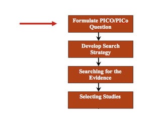 This document discusses systematic reviews and their process. It defines systematic reviews as attempts to identify, appraise, and synthesize all empirical evidence that meets pre-specified eligibility criteria to answer a given research question. It notes there are quantitative, qualitative, and mixed methods reviews. The document outlines the steps in conducting a systematic review, including developing a protocol and research question, locating studies, assessing studies, extracting and analyzing data, and presenting results.