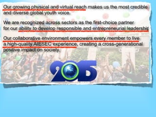 This document appears to be from an AIESEC conference and discusses the organization's goals and vision. It includes: