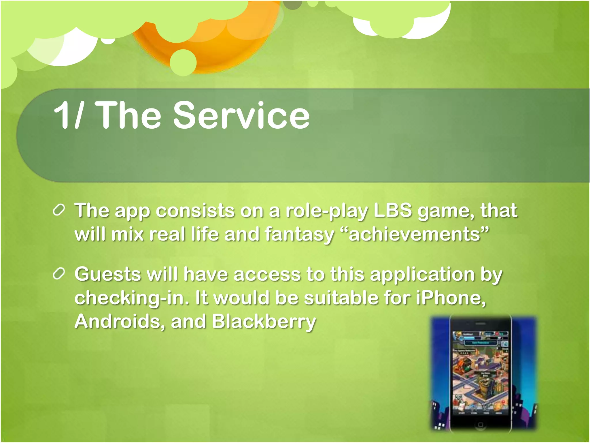 The app AroundU is a location-based role playing game for hotel guests that mixes real life and fantasy achievements. Guests can create avatars and use an accurate 3D map to visit nearby partner locations like shops, restaurants and attractions using augmented reality without leaving their hotel room. Each day, the hotel launches a new mission or assignment through the app that offers rewards for guests, such as receiving a free drink for stamping their avatar at the most partner locations before a deadline. The app enhances the hotel's brand awareness and generates partnerships with other local businesses. However, implementing and maintaining such an app comes with costs and requires dedicated staff.