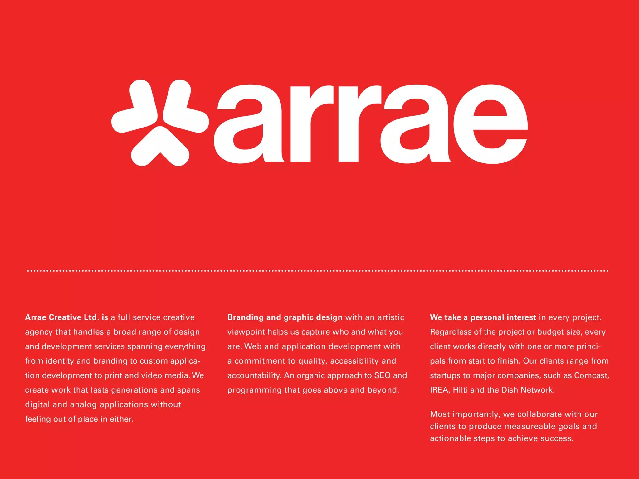 The marketing process involves four stages: Survey & Explore to determine project scope and strategies; Create & Unveil where creative products are produced and unveiled to clients for feedback; Refine & Edit where assets are refined based on client feedback; and Performance Evaluation where success is evaluated against benchmarks set initially. Arrae Creative is a full service creative agency based in Denver that specializes in collaborative communication throughout the process.