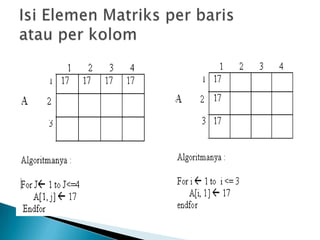 Array dapat digunakan untuk menyimpan banyak data yang bertipe sama sekaligus. Nilai-nilai dalam array dapat diproses secara berurutan dengan menggunakan indeks. Ada beberapa cara untuk menemukan nilai maksimum dalam array, salah satunya dengan membandingkan setiap elemen dengan nilai maksimum sementara.