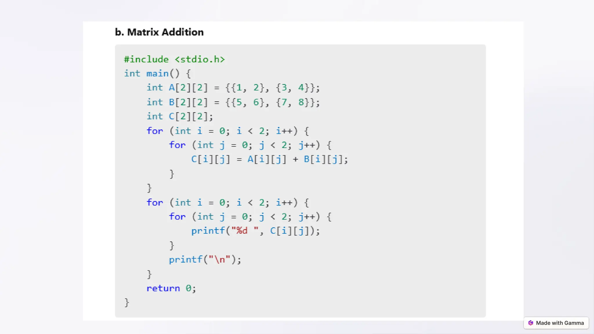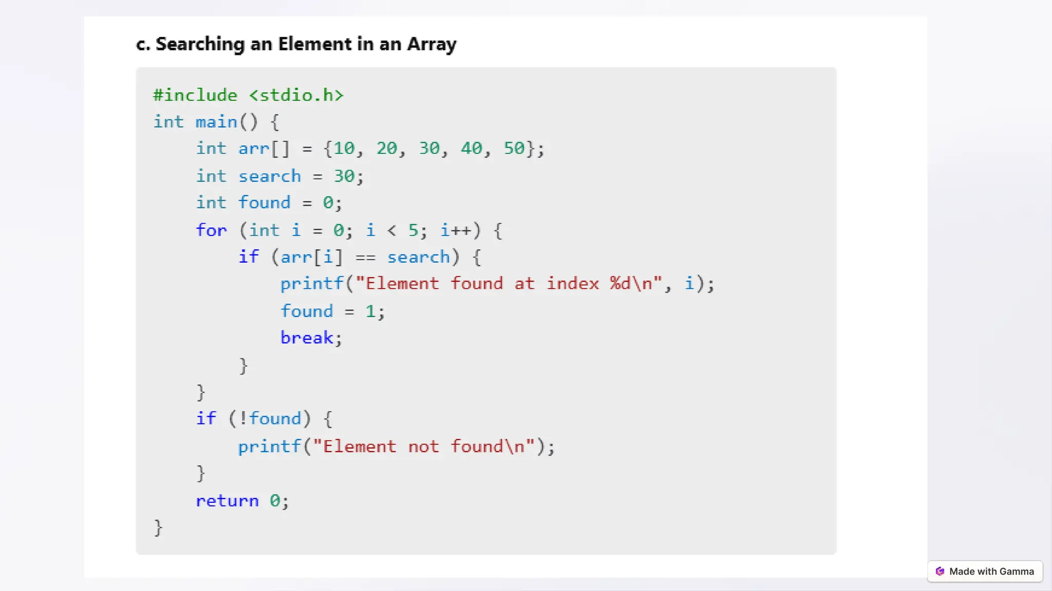 This document provides a comprehensive overview of arrays in C programming, defining them as collections of elements of the same data type that facilitate efficient data manipulation. It discusses declaration, initialization, and various operations such as traversal, searching, and sorting, while also touching upon advanced concepts like dynamic arrays and multidimensional arrays. Additionally, real-world applications in areas like sorting algorithms and game development illustrate the practical relevance of arrays.