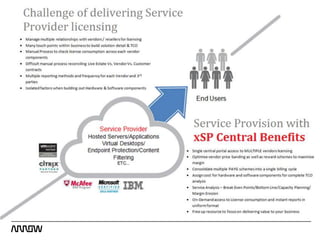 This document introduces ArrowSphere, a cloud platform that aims to help channel partners by removing barriers and providing opportunities. It discusses how ArrowSphere can help partners control costs through fit-for-purpose services, stand out from competitors, grow their customer base, and more easily manage vendor reporting. Partners can introduce new white-labeled cloud services with low cost of entry and exit through ArrowSphere's best-in-class catalog. The platform also offers competitive advantages like increased wallet share and ARPU, zero risk and high margin billing services. It concludes by inviting partners to learn more about reselling ArrowSphere's cloud offerings.