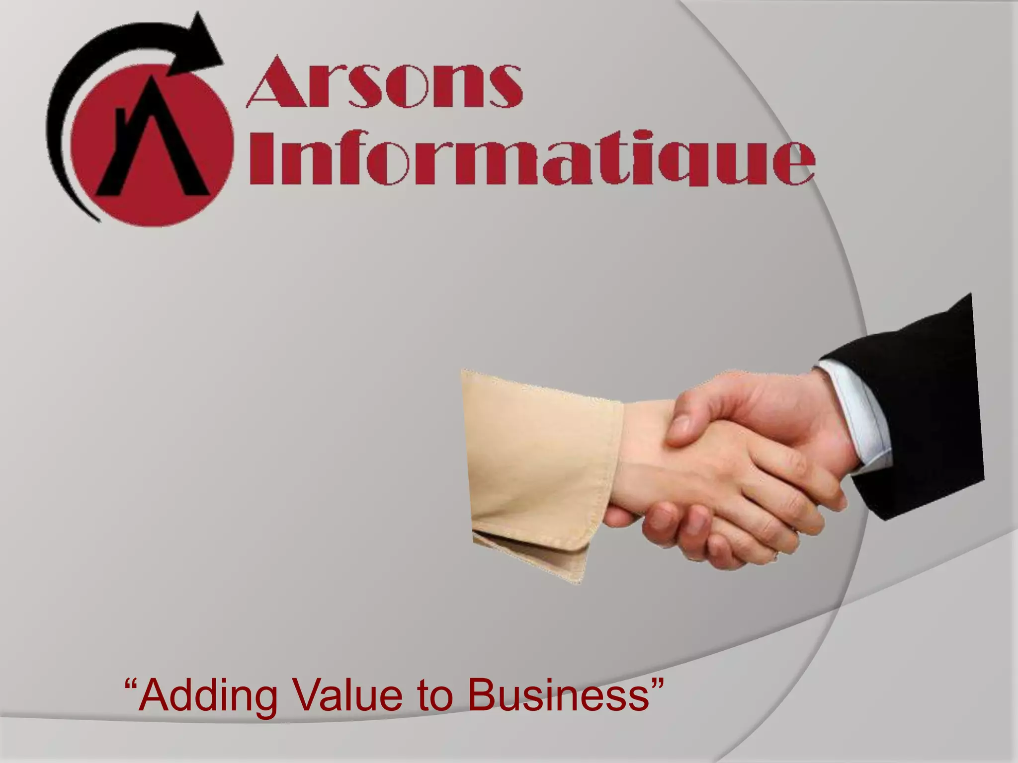 The document outlines the services and expertise offered by Arsons Informatique, including software development, IT consulting, and support for various solutions such as Oracle e-business suite and custom applications. It highlights the company's commitment to quality assurance, timely solution delivery, and a range of industry experience, while also detailing their project management and execution methodologies. Client testimonials reflect positive experiences with the company's implementation and support services.