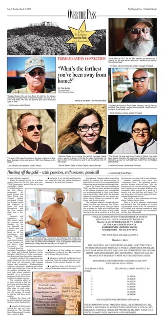 The document is a newspaper listing various community events occurring on March 10th and 11th in Trinidad, Colorado and surrounding areas. It includes notices for county commissioner, city council, school board, and other local government meetings. It also lists religious services, support groups, fundraisers, and recreational activities happening around the community on those dates.