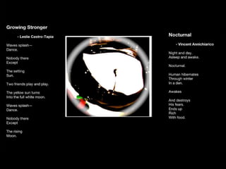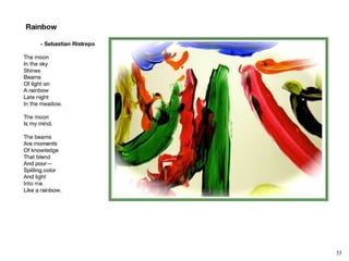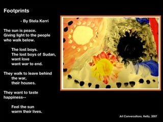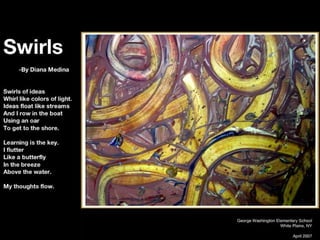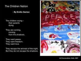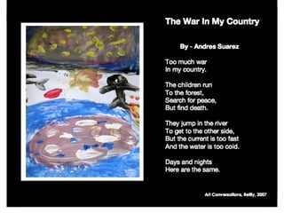 The document describes a trial unit of study conducted by the author with bilingual teachers at a New Jersey middle school. The unit focused on journeys and immigration. Students read books about refugees and engaged in art conversations, where they used art supplies to have dialogues without words. The author then used the artworks to inspire student poems. Large panels were created combining art and poems. The unit helped increase students' reading proficiency and interest in immigration topics.