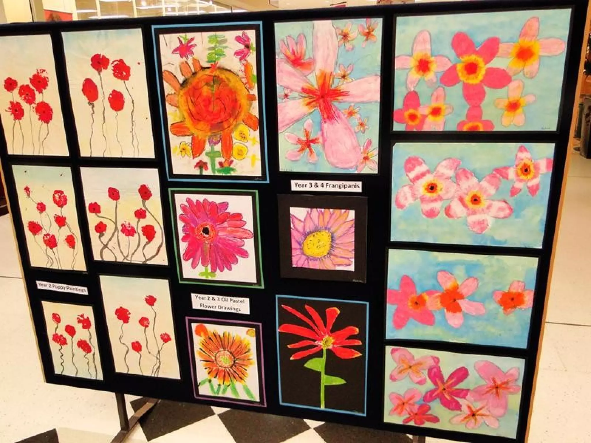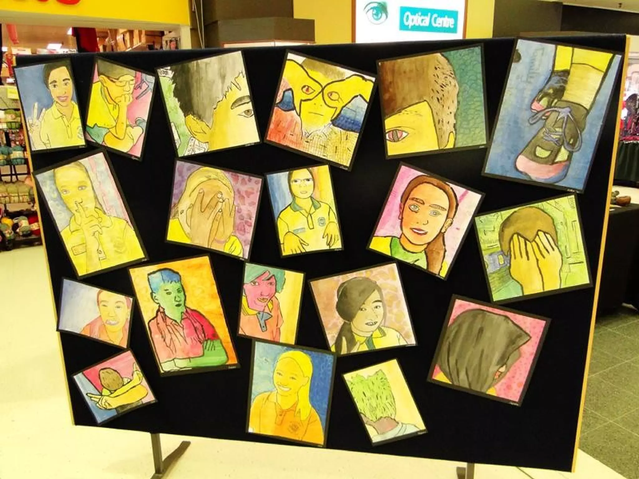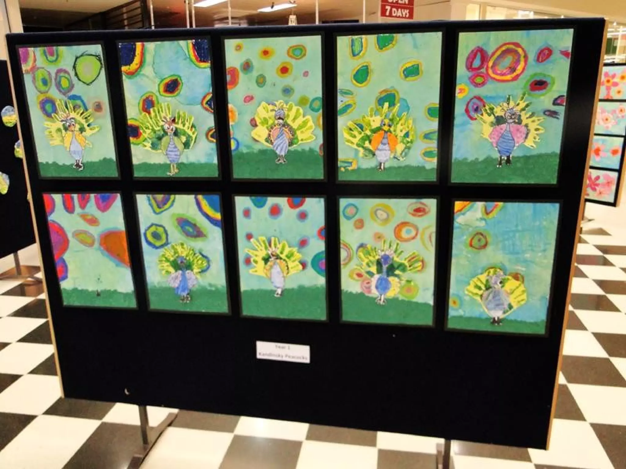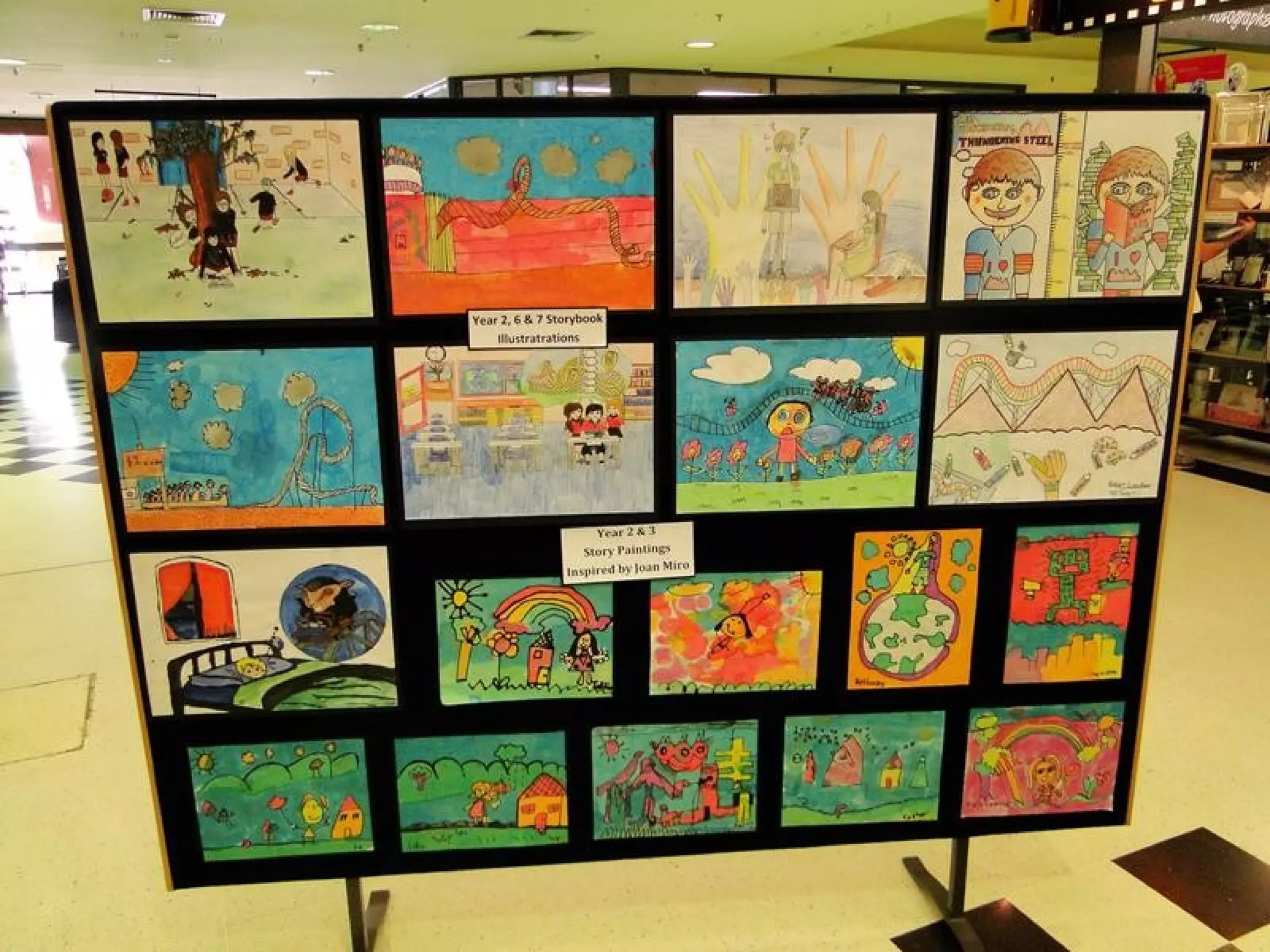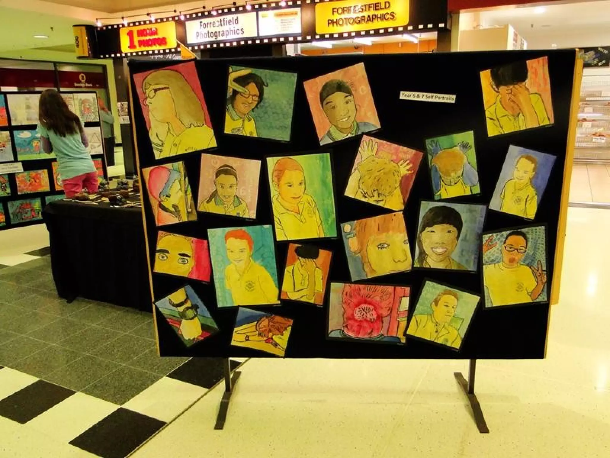 Wattle Grove Primary School showcased artworks at Forrestfield Shopping Centre during the Term 3 break in 2013. The display was set up in both the Coles and Woolworths sections. Congratulations were extended to Ms. Larkin and the art students for their achievement.