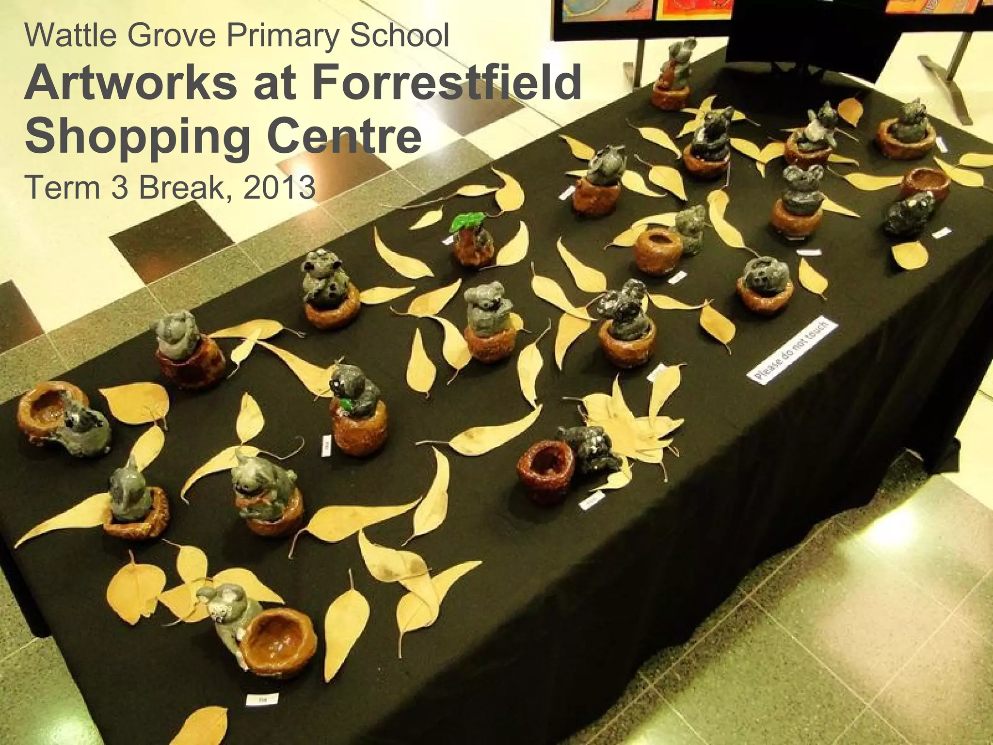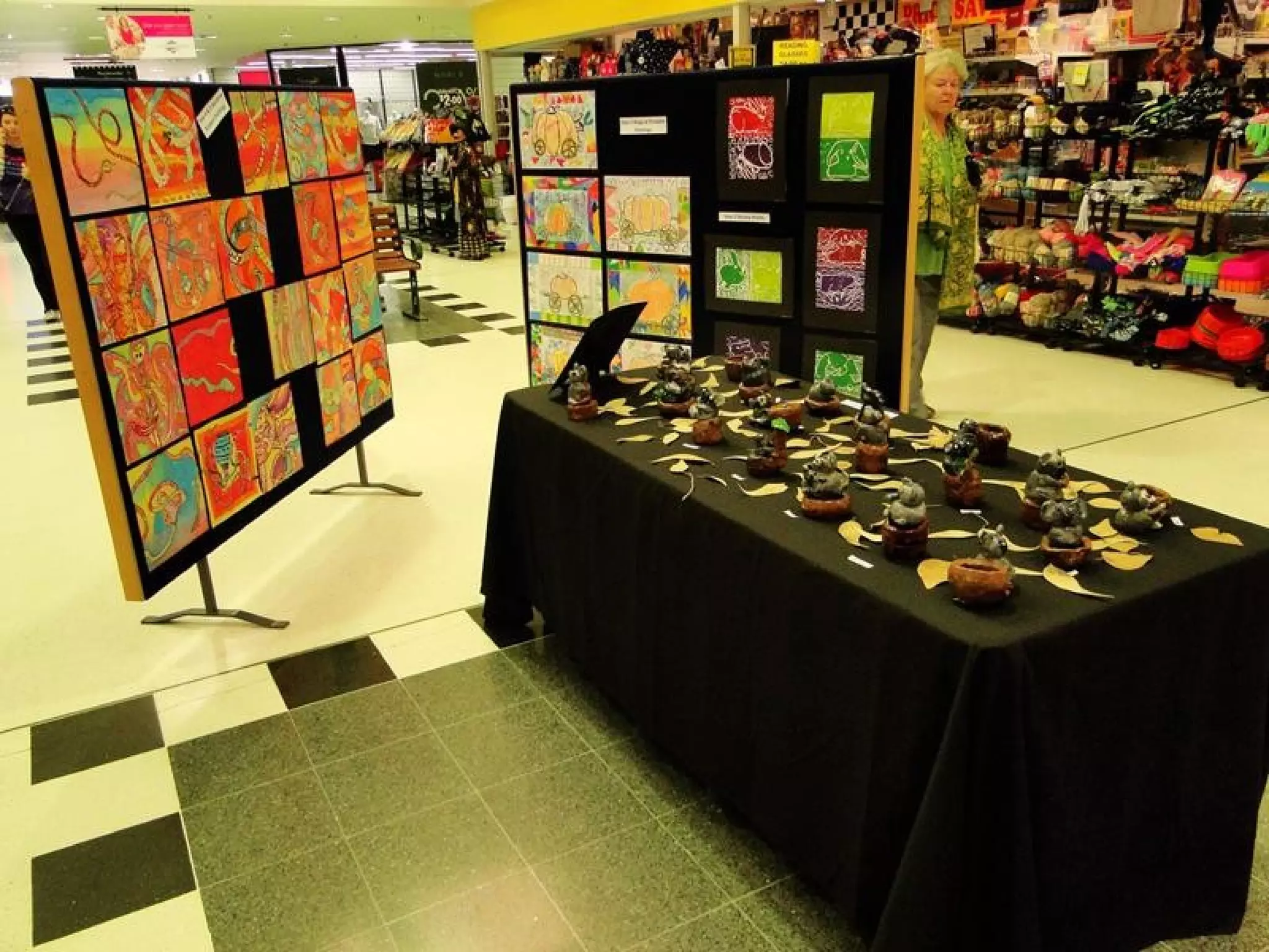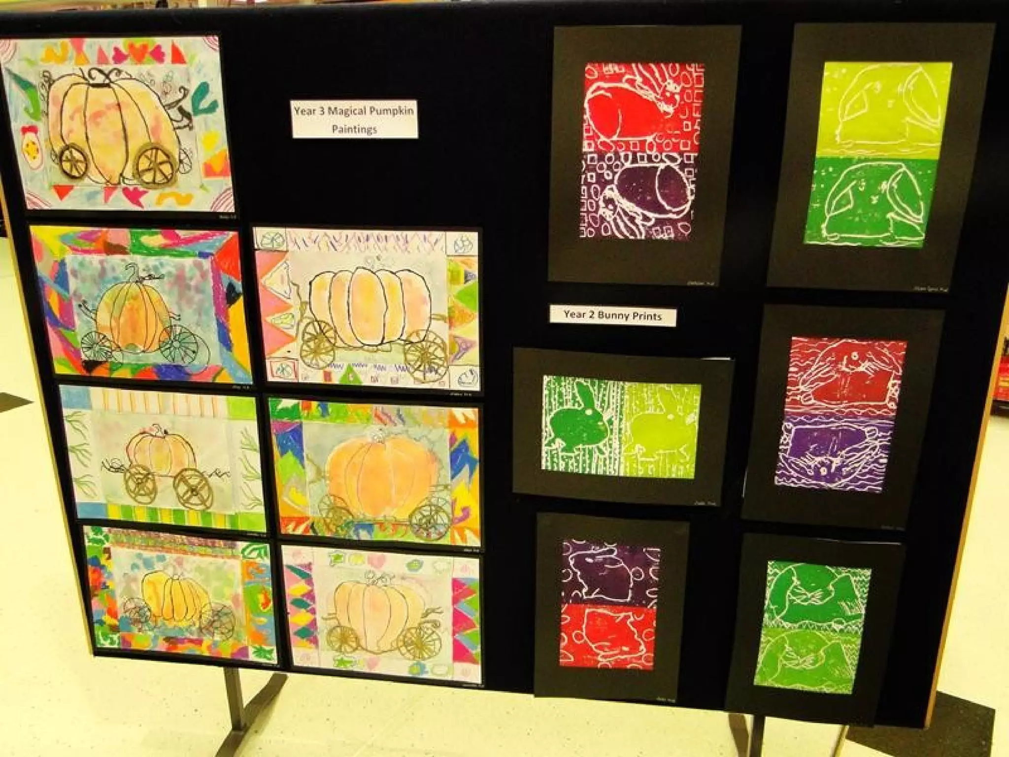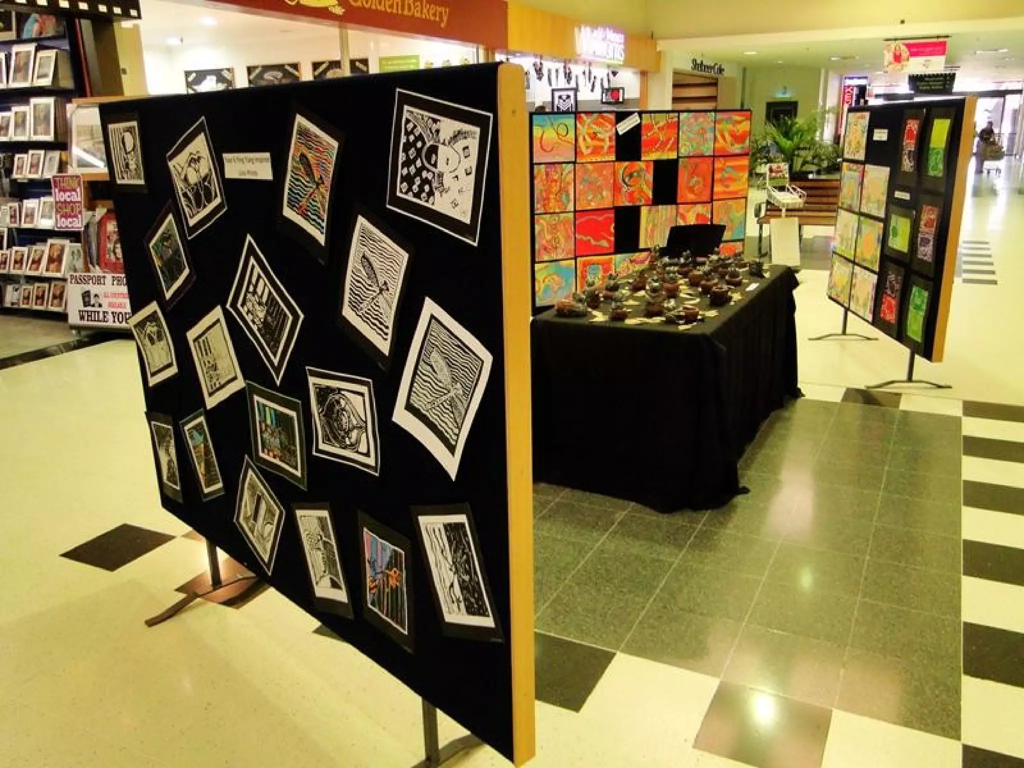 Wattle Grove Primary School showcased artworks at Forrestfield Shopping Centre during the Term 3 break in 2013. The display was set up in both the Coles and Woolworths sections. Congratulations were extended to Ms. Larkin and the art students for their achievement.