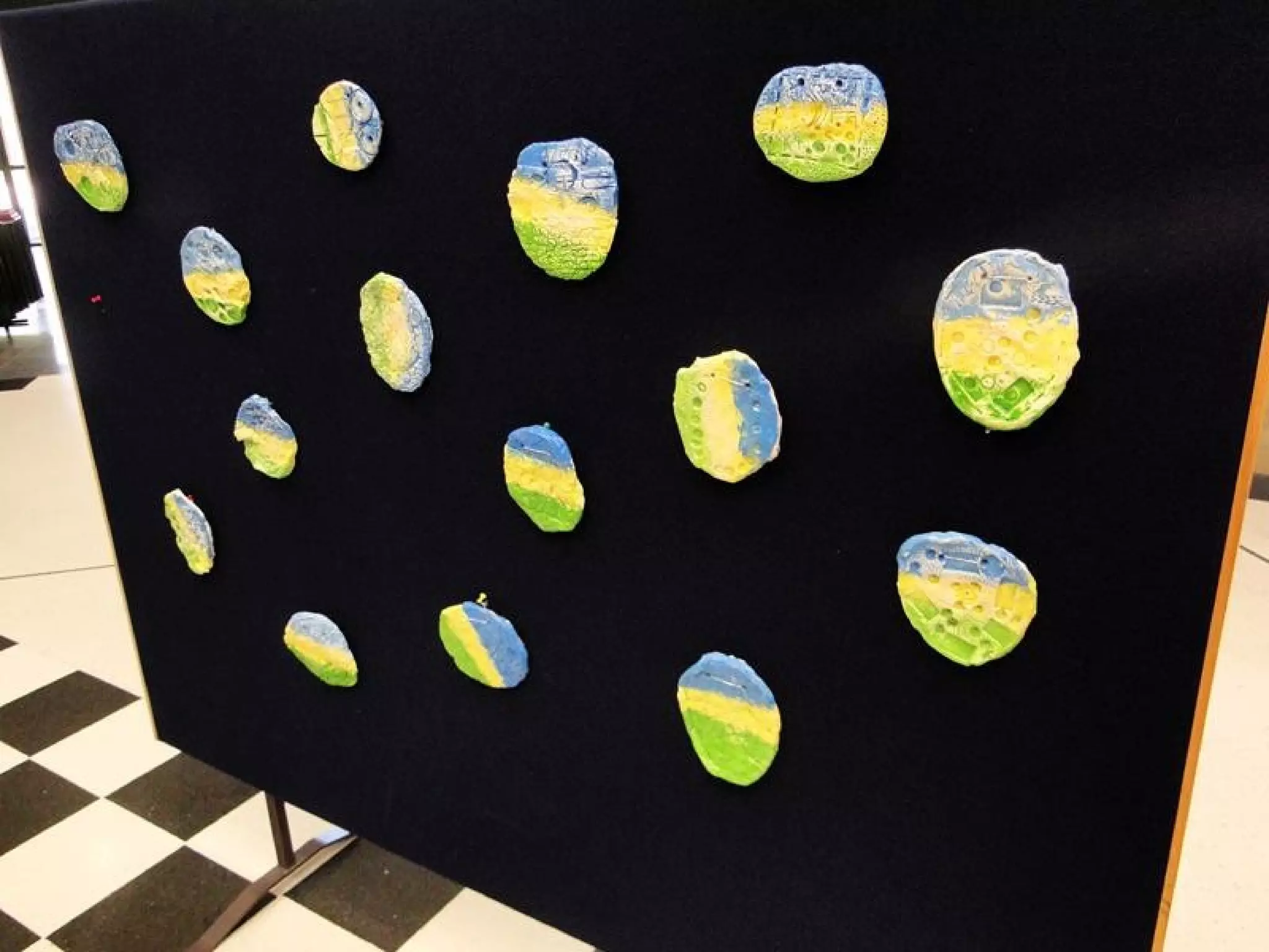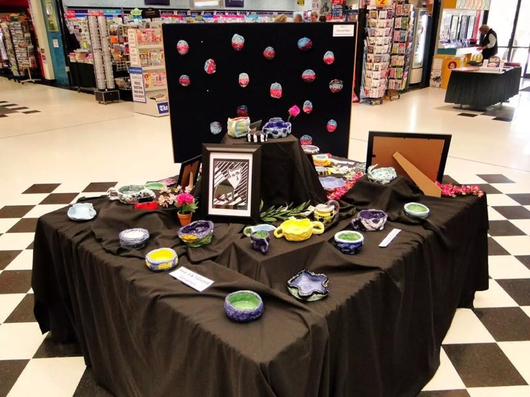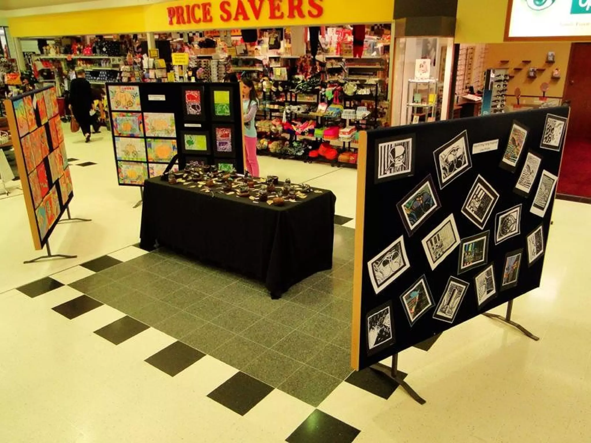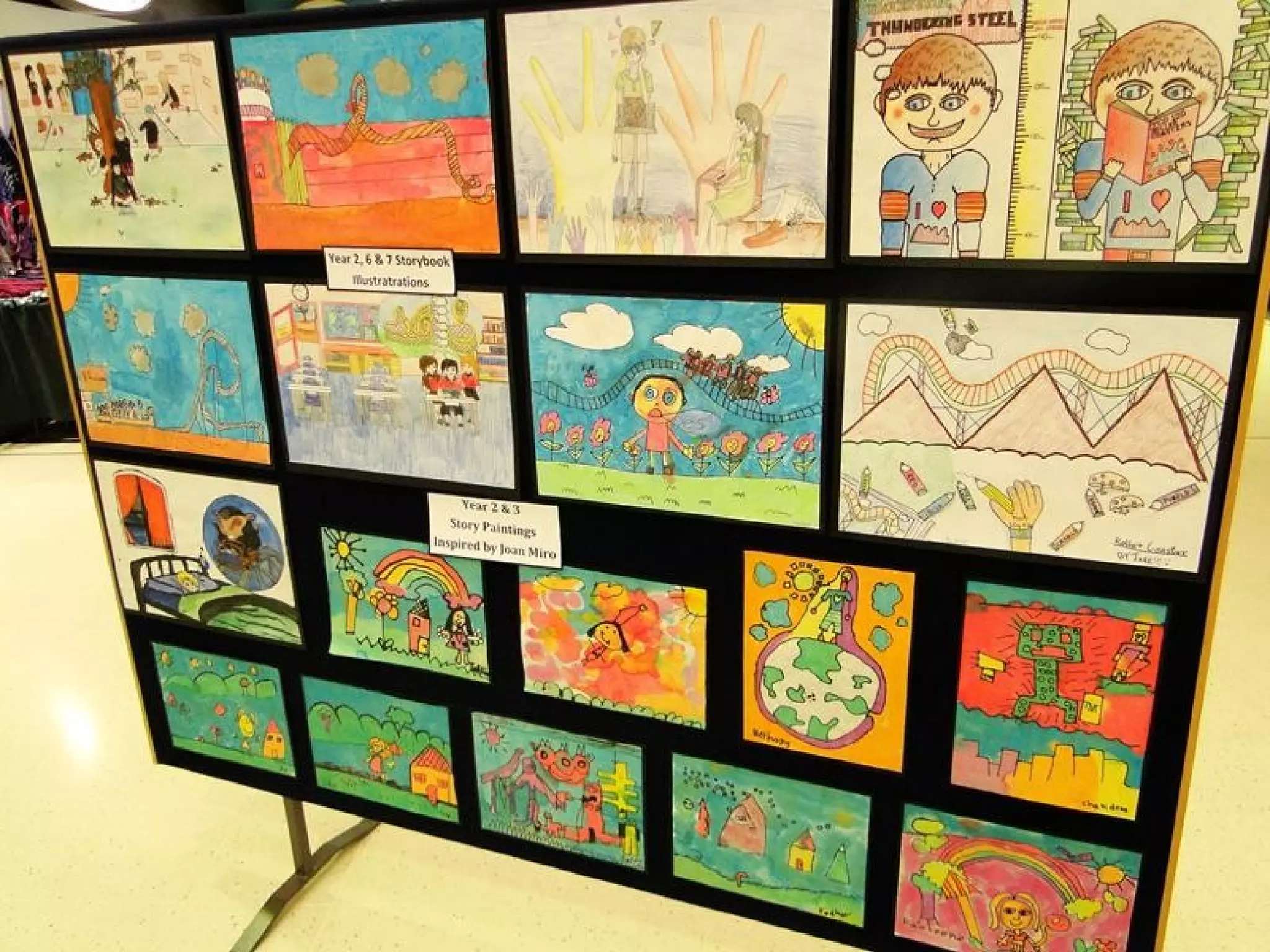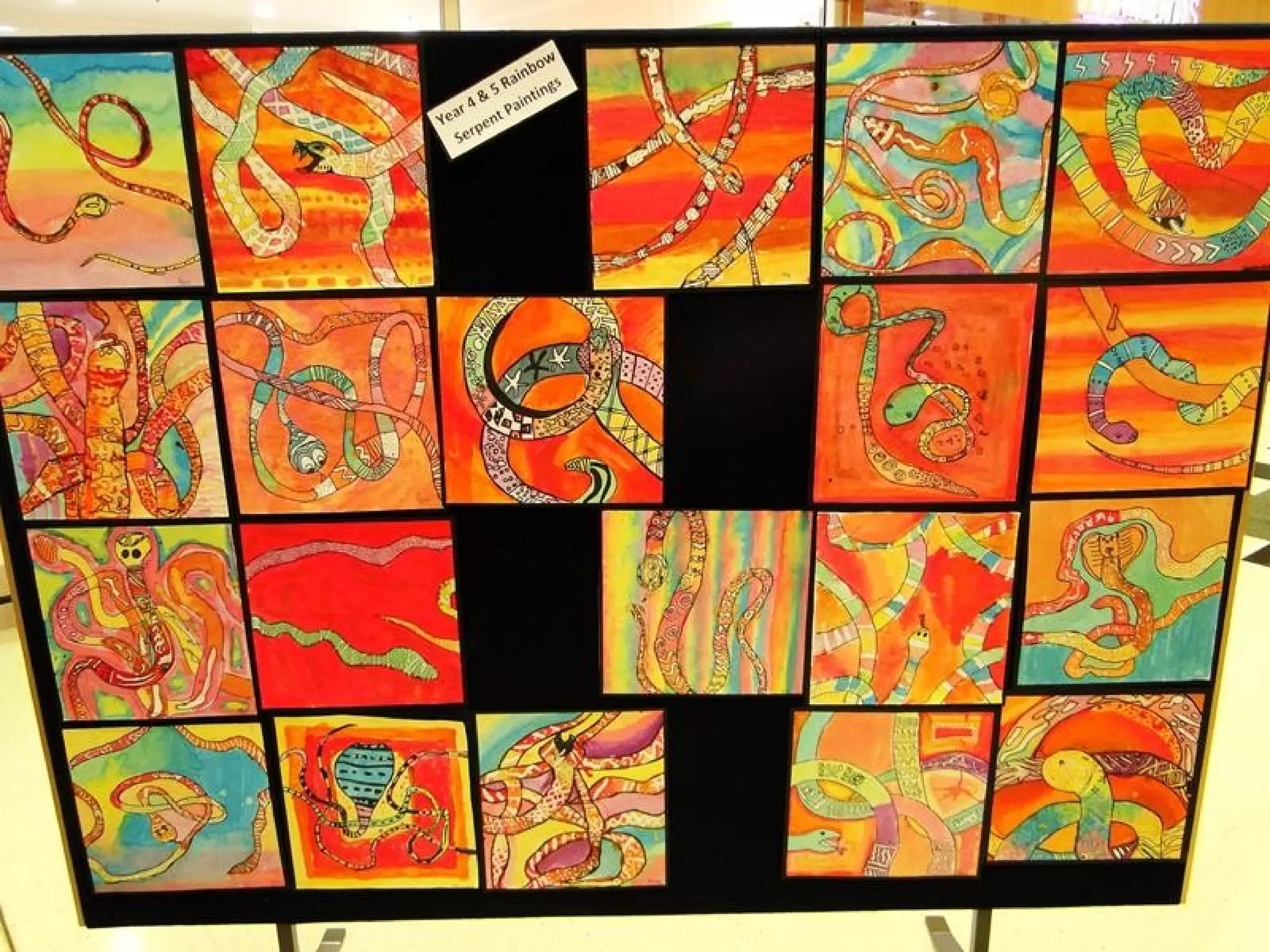 Wattle Grove Primary School showcased artworks at Forrestfield Shopping Centre during the Term 3 break in 2013. The display was set up in both the Coles and Woolworths sections. Congratulations were extended to Ms. Larkin and the art students for their achievement.