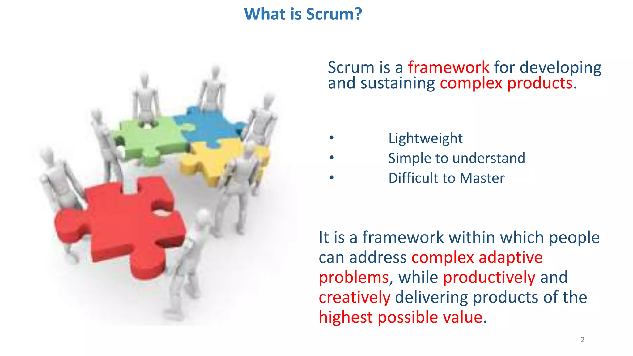 The document discusses the Scrum framework as a method for developing complex products, emphasizing its iterative, flexible nature and the importance of team dynamics. It outlines key principles of Scrum theory, including the values and roles within the framework, and provides practical scenarios and suggestions for improving team performance and addressing common challenges. The focus is on mastering the framework's processes before innovating and ensuring effective communication, commitment, and continuous improvement within Scrum teams.