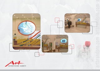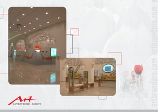 This document outlines Art Advertising Agency as a full-service branding and communications agency in Egypt. It provides their vision of becoming a dynamic player in building and maintaining brand leadership through creative resources. The agency aims to facilitate growth for client-partners by providing optimal business solutions. Core values include putting people and customers first, a focus on quality, and brand identity. Services offered include logo design, branding for food/restaurants, banks, and industrial clients, as well as digital signage and queueing systems.