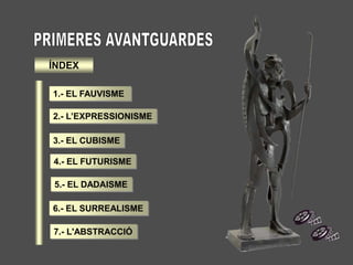 En aquesta presentació es descriuen els trets més significatius que van caracteritzar l'ABSTRACCIÓ, EL FUTURISME, el DADAISME i el SURREALISME